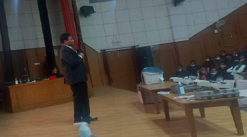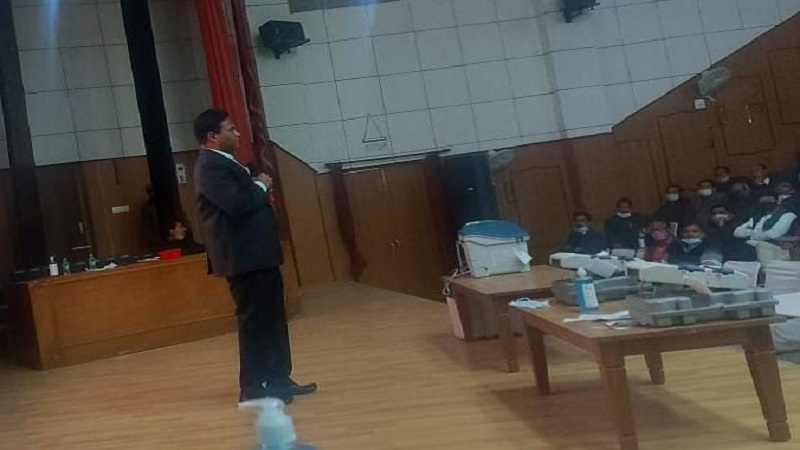 देहरादून: विधानसभा सामान्य निर्वाचन की मतगणना कार्य हेतु जनपद के सर्वे ऑडिटोरियम हाथीबड़कला में दिए जा रहे प्रशिक्षण कार्यक्रम में आज जिला निर्वाचन/जिलाधिकारी डॉ0 आर राजेश कुमार ने सम्बोधन करते हुए कहा कि मतगणना के दौरान कार्मिकों से दिए गए दायित्व का निर्वहन भारत निर्वाचन आयोग की गाइडलाइन एवं दिशा-निर्देशों करें। साथ ही मतगणना कार्य त्रुटिरहित सम्पादित करने हेतु सभी कार्मिकों परीक्षण को गम्भीरता से लें तथा प्रशिक्षण में मास्टर ट्रेनरों द्वारा बताई जा रही बारिकियों को ध्यानपूर्वक समझते हुए किसी प्रकार की शंका होने पर उसका तत्काल मास्टर ट्रेनरों से समाधान करें ताकि मतगणना के दिन किसी प्रकार की दिक्कतों का सामना न करना पड़े। मतदान तीन प्रकार से किया गया है,जिसमें पोस्टल बैलेट, इलैक्ट्रानिक ट्रांसमीटेड पोस्टल बैलेट तथा ईवीएम की मतगणना की जाएगी। तथा कार्मिकों को तीनों प्रकार की मतगणना के सम्बन्ध में प्रशिक्षण दिया जा रहा है। प्रशिक्षण कार्यक्रम में मास्टर ट्रेनरों द्वारा मतगणना हेतु नियुक्त कार्मिकों मतगणना के दौरान निभाये जाने वाले दायित्वों एवं बारीकियों के व्यवहारिक एवंतकनीकि प्रशिक्षण देते हुए सभी पहलुओं के बारे में विस्तार बताया गया। इस अवसर पर मास्टर टेªनर एम.एम खान एवं अन्य प्रशिक्षक उपस्थित रहे।