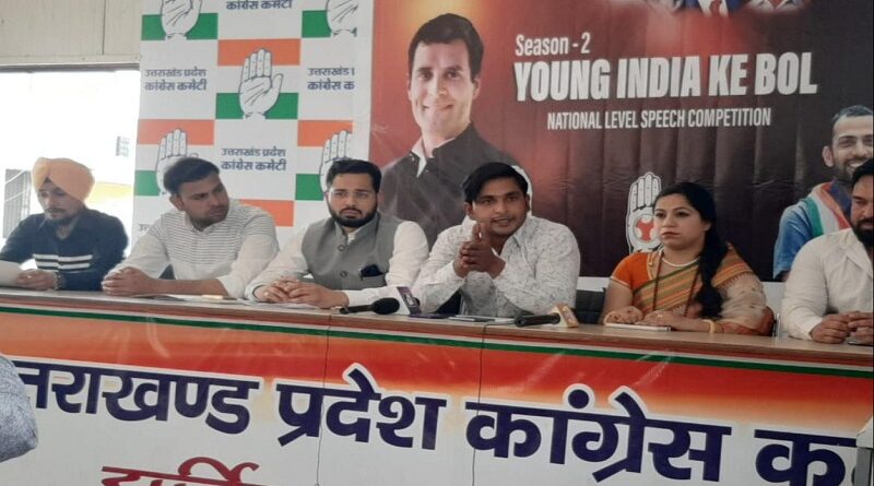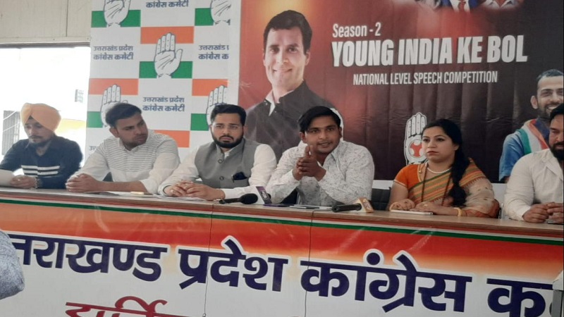 कांग्रेस भवन में आयोजित प्रेस वार्ता को सबोधित करते हुए उन्होंने कहा कि अगर इस देश को बचाना है, अगर संविधान को बचाना है, आइडिया ऑफ इंडिया को बचाना है तो आम परिवारों से आने वाले युवाओं को आगे आना होगा और उनको राजनीति में मंच देने का काम हम भारतीय युवा कांग्रेस करने जा रहे हैं पिछले वर्ष यंग इंडिया के बोल के माध्यम से कई युवाओं को राष्ट्रीय प्रवक्ता बनने का मौका मिला था ठीक उसी प्रकार हम यंग इंडिया के बोल सीजन 2 उत्तराखंड में आज लांच कर रहे हैं और मैं उत्तराखंड के युवाओं से यह आग्रह करता हूं कि अगर आप भी भारतीय जनता पार्टी की जन विरोधी नीतियों से प्रताड़ित है अगर आपको भी आज देश के मौजूदा हाल देखकर गुस्सा आता है तो आइए यंग इंडिया के बोल का फॉर्म भर कर इस भाषण प्रतियोगिता का हिस्सा बनिए और इस सरकार की पोल देशवासियों के समक्ष खोलिए और भारत को बचाने के संघर्ष का हिस्सा बनिये। इस प्रतियोगिता के लिए एचटीएमएल फॉर्म लिंक के माध्यम से आवेदन कर सकते हैं। हमारे सोशल मीडिया हैंडल में लिंक पा सकते हैं। इस अवसर पर सोनू हसन पूर्व राष्ट्रीय संयोजक भारतीय युवा कांग्रेस, शिवा वर्मा मीडिया प्रभारी युवा कांग्रेस, रोबिन त्यागी प्रदेश महासचिव युवा कांग्रेस, नेहा चौहान राष्ट्रीय प्रवक्ता युवा कांग्रेस ,अमनदीप सिंह बत्रा प्रदेश प्रवक्ता युवा कांग्रेस, आरुषि सुंद्रियाल प्रदेश प्रवक्ता युवा कांग्रेस ,प्रदीप बिष्ट प्रदेश सचिव युवा कांग्रेस, मनोज हुलारा प्रदेश प्रवक्ता युवा कांग्रेस,अजय धीमान जिला सचिव युवा कांग्रेस, ललित धननगर जिला सचिव युवा कांग्रेस,गौरव जसवाल प्रदेश प्रवक्ता युवा कांग्रेस, किरण प्रजापति आदि मौजूद थे।