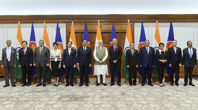 नई दिल्ली: प्रधानमंत्री नरेन्द्र मोदी ने गुरुवार को दक्षिण पूर्वी एशियाई राष्ट्रों के संगठन (आसियान) देशों के विदेश मंत्रियों और प्रतिनिधियों से मुलाकात की। प्रधानमंत्री मोदी ने गुरुवार को मुलाकात की तस्वीर ट्विटर पर साझा करते हुए कहा, “जब हम भारत-आसियान सहयोग के 30 साल पूरे होने का जश्न मना रहे हैं, तो आसियान देशों के विदेश मंत्रियों और प्रतिनिधियों के साथ अच्छी बातचीत हुई।” नई दिल्ली् में आज से आसियान-भारत विदेश मंत्रियों की दो दिवसीय विशेष बैठक शुरु हुई। बैठक में प्रशांत क्षेत्र में सहयोग और व्यापार बढ़ाने के साथ ही रणनीतिक संबंधों को मजबूत करने पर चर्चा हुई।