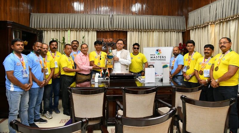मुख्यमंत्री पुष्कर सिंह धामी नेशनल खेलो मास्टर्स गेम्स की स्वर्ण और काँस्य पदक विजेता फुटबाल खिलाड़ियों को किया सम्मानित