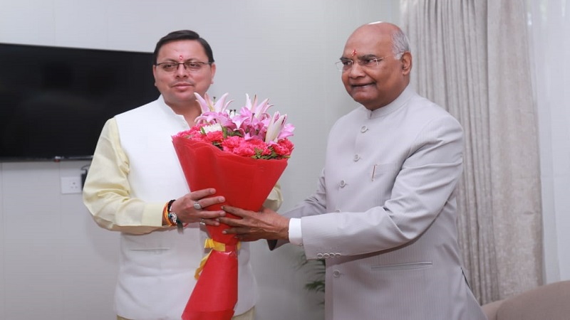 मुख्यमंत्री पुष्कर सिंह धामी ने पूर्व राष्ट्रपति रामनाथ कोविंद से शिष्टाचार भेंट की