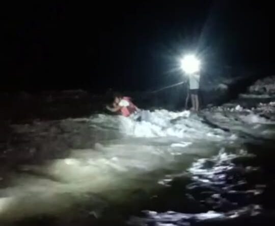 देहरादून। मालदेवता में देर रात नदी का जलस्तर अचानक बढ़ गया। इस दौरान पांच युवक नदी में ही टापू पर फंस गए। सूचना पर पहुंची एसडीआरएफ की टीम ने युवकों को रेस्क्यू कर नदी से सुरक्षित निकाला। प्राप्त जानकारी के अनुसार देर रात थाना रायपुर से चौकी माल देवता पर सूचना दी गई कि केसर वाला मालदेवता चौकी के पास पांच व्यक्ति नदी में फस गए हैं, इस सूचना पर चौकी प्रभारी पर्याप्त पुलिस बल के साथ घटनास्थल पर मौके तो देखा कि पांच व्यक्ति जो कि नदी के बीच में फस गए थे व पानी का बहाव इतना तेज था कि कुछ भी देरी रही हो जाती तो पांचों व्यक्तियों को बचाना मुश्किल था, किंतु उक्त व्यक्तियों को बचाने के लिए अपनी जान की परवाह ना करते हुये एसडीआरएफ टीम के साथ रेस्क्यू कर सभी को सकुशल नदी के तेज भाव से बाहर निकाल कर चौकी लाया गया व परिजनों के सुपुर्द किया गया।