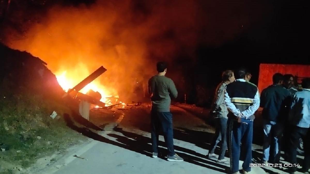 जनरल स्टोर में लगी आग, सिलेंडर में धमाके से विकट हुई लपटें