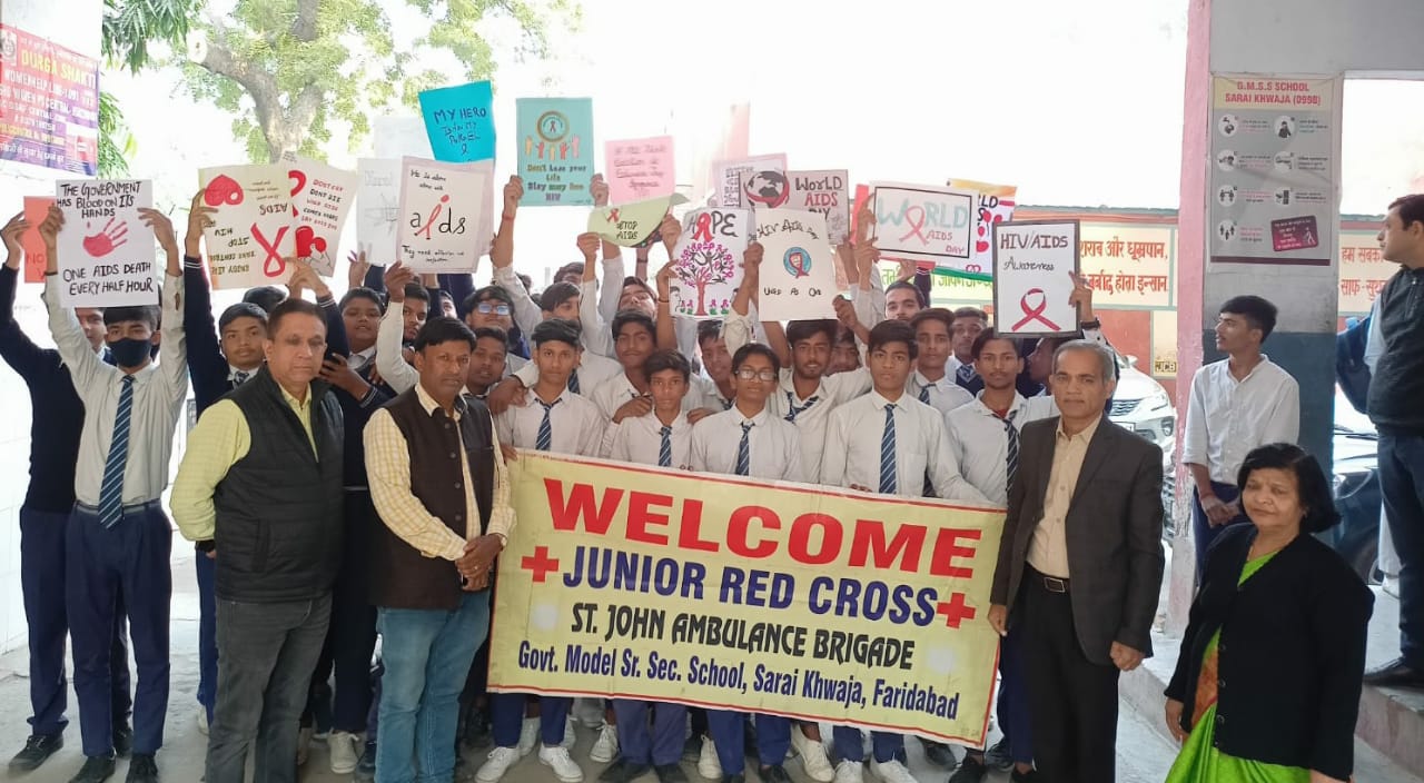 शिक्षा विभाग के आदेशानुसार राजकीय आदर्श वरिष्ठ माध्यमिक विद्यालय सराय ख्वाजा में प्राचार्य रविंद्र कुमार मनचंदा की अध्यक्षता में जूनियर रेड क्रॉस और सेंट जॉन एम्बुलैंस ब्रिगेड ने विश्व एड्स दिवस पर जागरूकता रैली का आयोजन कर एड्स से बचाव का संदेश दिया। जे आर सी व ब्रिगेड अधिकारी प्राचार्य रविन्दर कुमार मनचन्दा ने आज विश्व एड्स दिवस पर विभिन्न जागरूकता गतिविधियों का आयोजन किया। उन्होंने कहा कि 1988 के पश्चात से 1 दिसंबर को प्रत्येक वर्ष विश्व एड्स दिवस मनाया जाता है जिसका उद्देश्य एचआईवी संक्रमण के प्रसार की वजह से एड्स महामारी के प्रति जागरूकता बढाना और इस बीमारी से दिवंगत हो गए व्यक्तियों का शोक मनाना है। भिन्न भिन्न संगठनों, सरकार, स्वास्थ्य संस्थान व अधिकारी, गैर सरकारी संगठन और विश्व भर में हम सभी सामान्यतः एड्स की रोकथाम और नियंत्रण पर शिक्षा के साथ इस दिन विशेष अभियानों का संचालन करते हैं। एचआईवी पॉजिटिव लोगों के साथ एकजुटता और एड्स के साथ जी रहे लोगों के लिए वैश्विक प्रतीक जागरूकता के अन्तर्गत सभी को एड्स के लक्षण, इससे बचाव, उपचार, कारण इत्यादि के बारे में जानकारी दी जाती है और कई अभियान चलाए जाते हैं जिससे इस महामारी को जड़ से समाप्त करने के प्रयास किए जा सकें। साथ ही एचआईवी एड्स से ग्रसित लोगों की सहायता की जा सकें। एड्स अधिकतर उन देशों में है जहां लोगों की आय बहुत कम है या जो लोग मध्यवर्गीय परिवारों से संबंध रखते हैं। एचआईवी एड्स आज विश्व भर के सभी महाद्वीपों में महामारी की तरह फैला हुआ है जो कि पुरुषों, महिलाओं और बच्चों के जीवन के लिए एक बड़ा खतरा है और जिसे मिटाने के हर संभव प्रयास किए जा रहे हैं। इस वर्ष का एच आई वी एड्स का थीम है इक्वालिटी अर्थात समानता। प्रत्येक व्यक्ति को अपने एचआईवी स्टेटस की जानकारी रखनी चाहिए। एड्स वर्तमान युग की सबसे बड़ी स्वास्थ्य समस्याओं में से एक है यूनिसेफ की रिपोर्ट के अनुसार 36.9 मिलियन अर्थात तीन करोड़ उन्नाहतर लाख लोग एच आई वी से प्रभावित हैं। भारत सरकार द्वारा जारी किए गए डाटा के अनुसार भारत में एचआईवी के रोगियों की संख्या लगभग 2.1 मिलियन अर्थात 21 लाख है। मनचन्दा ने बच्चों को बताया कि एड्स की जानकारी ही बचाव है निःसंदेह एड्स लाइलाज है फिर भी बचाव शर्तिया संभव है। जूनियर रेड क्रॉस सदस्यों ने पोस्टर के माध्यम से एड्स से सावधान किया। प्राचार्य रविन्दर कुमार मनचन्दा ने जागरूकता रैली को हरी झंडी दिखाई। संस्कृत अध्यापक धर्मपाल सिंह शास्त्री ने जागरूकता रैली का नेतृत्व किया। इस अवसर पर प्रज्ञा मित्तल, सोनिया जैन, नीलू सहित सभी अध्यापकों ने सभी से इस जानकारी को अपने पारिवारिक सदस्यों और मित्रों से भी शेयर करने और एड्स से सावधा