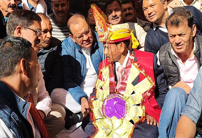 दूल्हा नेता प्रतिपक्ष यशपाल आर्य के साथ धरने पर बैठा