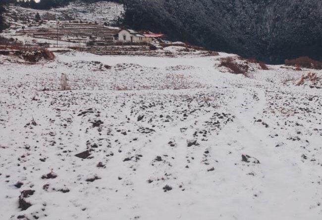देहरादून: कुछ दिनों से रुक-रुक कर बारिश और बर्फबारी का दौर जारी है। जिससे पहाड़ी और मैदानी इलाके कड़ाके की सर्दी की चपेट में हैं।दिन ढलते ही लोग अलाव का सहारा ले रहे हैं। वहीं शनिवार को धनोल्टी, मसूरी के नागटिब्बा में इस सीजन की पहली बर्फबारी से सैलानियों के चेहरे खिल गए हैं। शनिवार को चौथे दिन चारधाम सहित राज्य के उच्च हिमालयी क्षेत्रों में भी बर्फबारी का क्रम जारी है।शनिवार को चारधाम सहित उत्तराखंड की ऊंची चोटियों पर हल्के से मध्यम हिमपात हुआ। जबकि, निचले इलाकों में हल्की वर्षा दर्ज की गई। धनोल्टी व आसपास के इलाकों में सीजन का पहला हिमपात भी हुआ। इससे सैलानियों के चेहरे खिल गए।चारधाम समेत हेमकुंड साहिब, औली, हर्षिल व अन्य ऊंचाई वाले क्षेत्रों में पहाड़ों ने बर्फ की चादर ओढ़ ली है। शनिवार को तड़के बदरीनाथ, केदारनाथ, गंगोत्री और यमुनोत्री धाम में भी बर्फबारी हुई।उत्तरकाशी में गंगोत्री, यमुनोत्री हर्षिल घाटी, सांकरी, जखोल, गंगाड, दयारा बुग्याल सहित ऊंचाई वाले क्षेत्रों में शनिवार को बर्फबारी हुई। गंगोत्री राष्ट्रीय राजमार्ग झाला से लेकर गंगोत्री के बीच बर्फबारी के कारण अवरुद्ध हो गया है।आपदा प्रभावित जोशीमठ में बादल छाए रहे और आसपास की चोटियों में बर्फबारी हुई। जिससे राहत शिविरों में रह रहे प्रभावितों को दुश्वारियों का सामना करना पड़ रहा है।वहीं मौसम विभाग के अनुसार आज से अगले कुछ दिन शुष्क मौसम के बीच मैदानों में घना कोहरा और पहाड़ों में पाला दुश्वारियां बढ़ा सकता है। शीतलहर का अलर्ट भी जारी किया गया है।