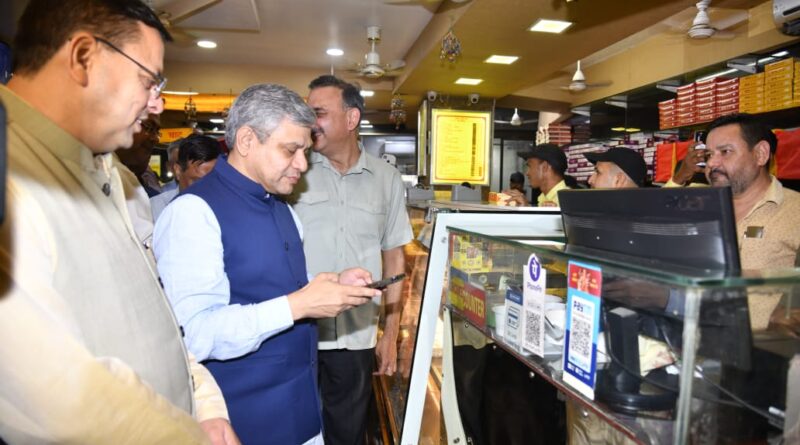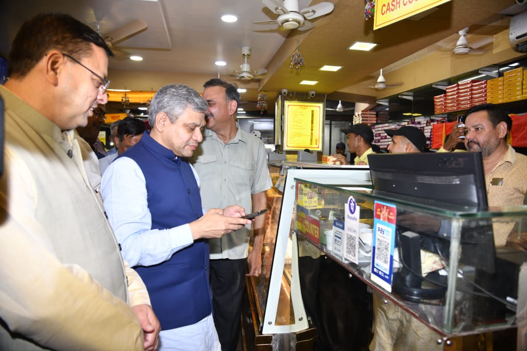 देहरादून। मुख्यमंत्री पुष्कर सिंह धामी एवं केंद्रीय संचार एवं रेल मंत्री अश्विनी वैष्णव ने राजपुर रोड स्थित एक निजी प्रतिष्ठान में सामग्री क्रय कर डिजिटल ट्रांजेक्शन के माध्यम से क्रय की गयी सामग्री का स्वयं भुगतान किया। केंद्रीय संचार एवं रेल मंत्री ने राज्य के उत्पादों की सराहना भी की।