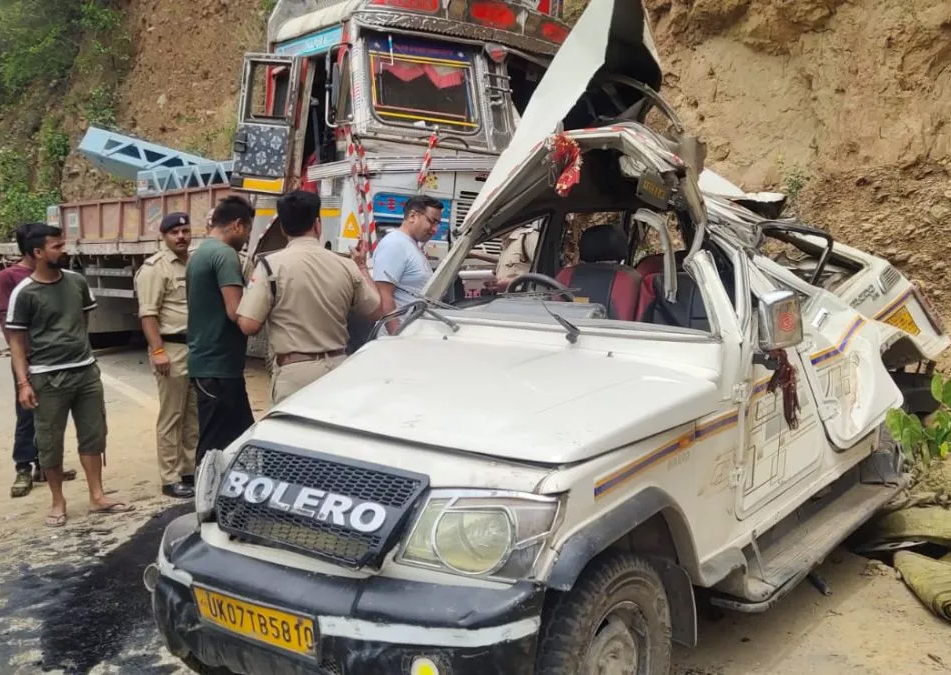टिहरी। ऋषिकेश – बदरीनाथ राजमार्ग पर आज दोपहर सड़क हादसा हुआ। तीन धारा के पास एनटीपीसी मोड़ पर एक बोलेरो गाड़ी की ट्रक से टक्कर हो गई। इस टक्कर में बोलेरो को काफी नुकसान हुआ। हादसे में दो लोगों की मौत हो गई है, जबकि चार लोगों घायल हो गए हैं।बोलोरो और ट्रक की टक्कर में करीब छह लोग घायल हुए थे। इन्हें आनन-फानन में अस्पताल पहुंचाया गया। देवप्रयाग अस्पताल में इलाज के दौरान दो लोगों ने दम तोड़ दिया। मृतकों की पहचान रमेश के रूप में हुई है। रमेश की उम्र 40 साल है। हादसे में घायल सोहन सिंह की भी इलाज के दौरान मौत हो गई। सोहन की उम्र 28 साल है। दोनों के शव को बेस अस्पताल श्रीनगर पी एम हेतु भिजवाया गया है।घायलो में महेश वर्मा पुत्र रामदीन निवासी कस्बा बीसलपुर जिला पीलीभीत उम्र 45 वर्ष, धर्मपाल पुत्र रामखेलावन निवासी उपरोक्त उम्र 30 वर्ष, महेंद्र पुत्र कोमल निवासी उपरोक्त उम्र 25 वर्ष, नरेश पुत्र डोरीलाल निवासी उपरोक्त उम्र 25 वर्ष है । बोलेरो गाड़ी में उत्तर प्रदेश के पीलीभीत के लोग थे। ये सभी श्रीनगर में काम करने जा रहे थे। इसी बीच उत्तराखंड में उनकी गाड़ी की ट्रक से टक्कर हो गई। इस टक्कर में चार लोग घायल हो गए हैं। घायलों का उपचार देवप्रयाग बागी अस्पताल में चल रहा है ।