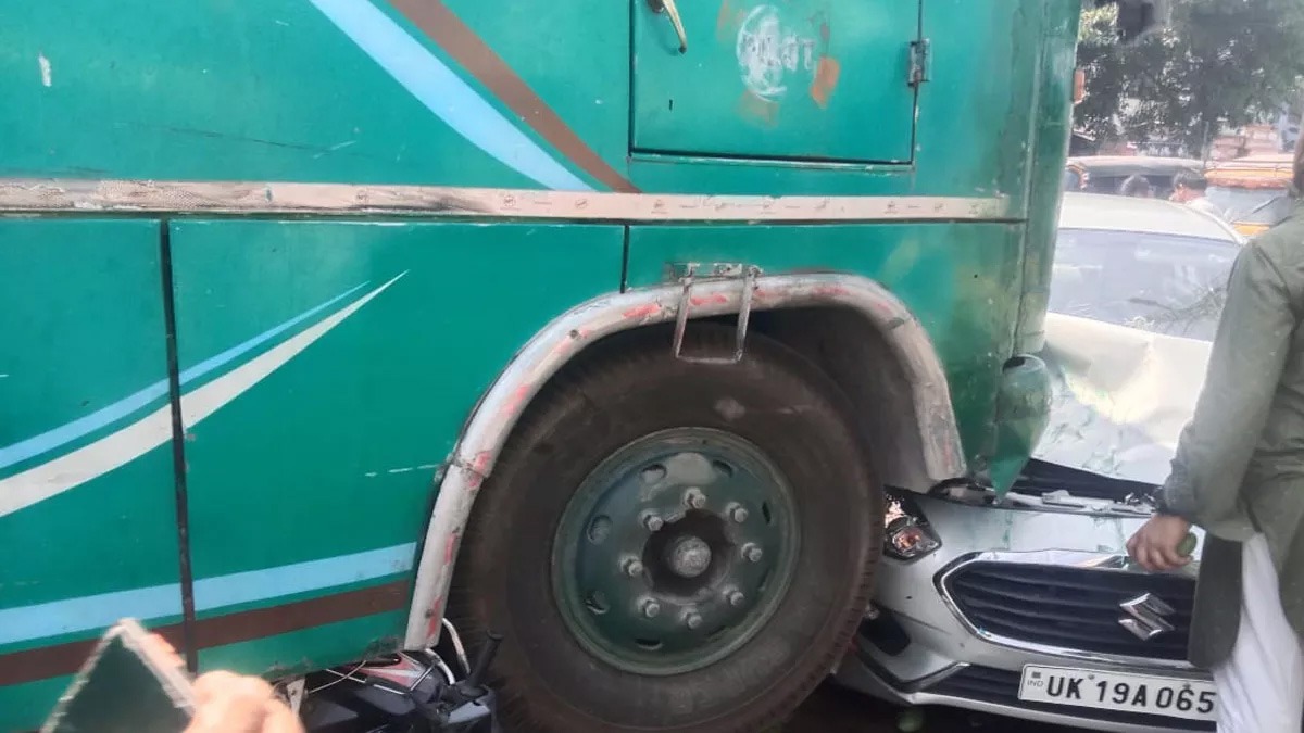 देहरादून। अंत्येष्टि में जा रहे दो व्यक्ति प्राइवेट बस की चपेट में आने से मौत हो गई। बस की चपेट में एक कार भी आ गई। दुर्घटना इतनी खतरनाक थी कि दोनों स्कूटी समेत बस के नीचे घुस गए। शवों का पोस्टमार्टम करने की कार्रवाई की जा रही है।