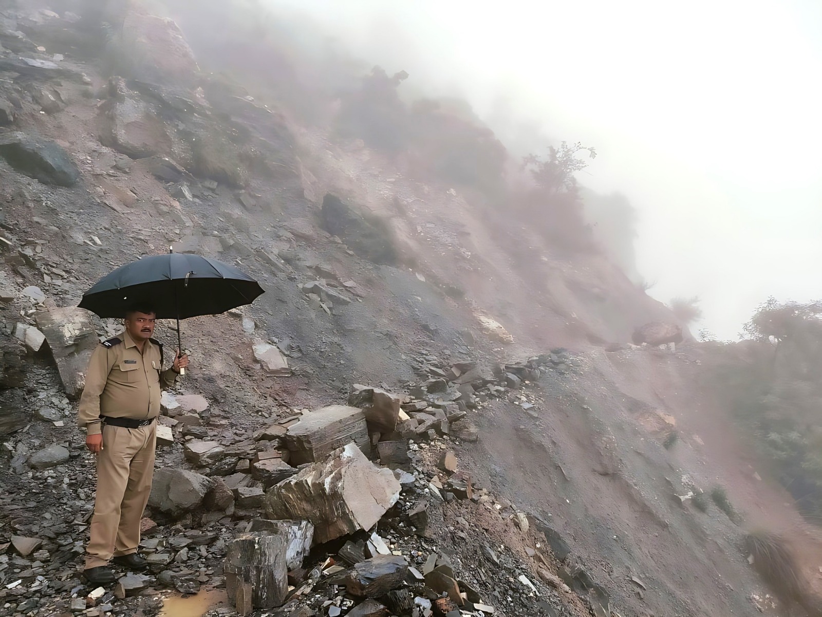 मलबा आने के कारण अवरुद्ध हो गया सड़क मार्ग