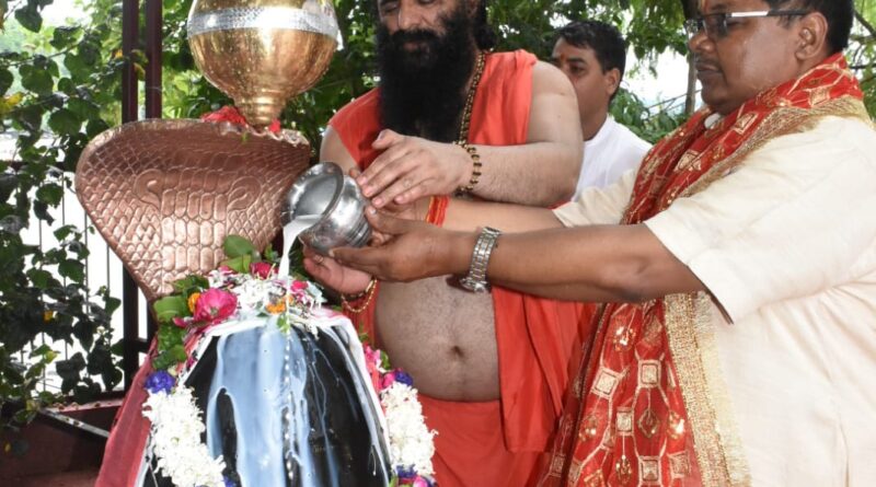 उक्त उद्गार उन्होंने शिवरात्रि पर चरण पादुका में किए जा रहे विशेष अनुष्ठान के दौरान श्रद्धालु भक्तों को श्रावण मास में भगवान शिव की उपासना और जलाभिषेक की महिमा के बारे में जानकारी देते हुए व्यक्त किए। श्री मंशेश्वर महादेव मंदिर में अखिल भारतीय अखाड़ा परिषद एवं मां मनसा देवी मंदिर ट्रस्ट अध्यक्ष श्रीमहंत रविंद्र पुरी महाराज और आरएसएस क्षेत्रीय प्रचार प्रमुख पदम सिंह ने जलाभिषेक किया। विश्व कल्याण की कामना की और बाढ़ से प्रभावित क्षेत्रों के लोगों के लिए भी विशेष तौर पर प्रार्थना की। श्रद्धालु भक्तों को संबोधित करते हुए श्रीमहंत रविंद्र पुरी महाराज ने कहा कि भगवान भोले शंकर जन जन के आराध्य हैं। शिवरात्रि भगवान शिव की आराधना का सबसे बड़ा पर्व है। श्रावण मास में भगवान शिव की आराधना करने से भक्तों की सभी मनोकामनाएं पूरी होती हैं। उन्होंने कहा कि रुद्र भगवान शिव का ही प्रचंड रूप हैं। शुक्ल यजुर्वेद के रूद्राष्टाध्यायी मंत्रों का पाठ करते हुए पंचामृत से शिवलिंग पर अभिषेक करने से महादेव प्रसन्न होते हैं। शिव कृपा से सभी ग्रह बाधाएं और समस्याएं दूर हो जाती हैं। उन्होंने बताया कि सावन में रुद्राभिषेक करना सबसे अधिक फलदायी होता है। रुद्राभिषेक करने से मनोकामनाएं जल्दी पूरी होती हैं। रुद्राभिषेक कष्ट या ग्रहों की पीड़ा दूर करने का सबसे उत्तम उपाय है। उन्होंने कहा कि महादेव भक्तों को पूरे वर्ष फल प्रदान करते हैं। लेकिन विशेष अवसरों पर की गई आराधना विशेष फलदायी होती है। आरएसएस के क्षेत्रीय प्रचार प्रमुख पदम ने कहा कि श्रावण मास भगवान सिंह की उपासना का पर्व है। संतों के सानिध्य में श्रावण मास में उपासना और जलाभिषेक करने से सुख समृद्धि आती है।