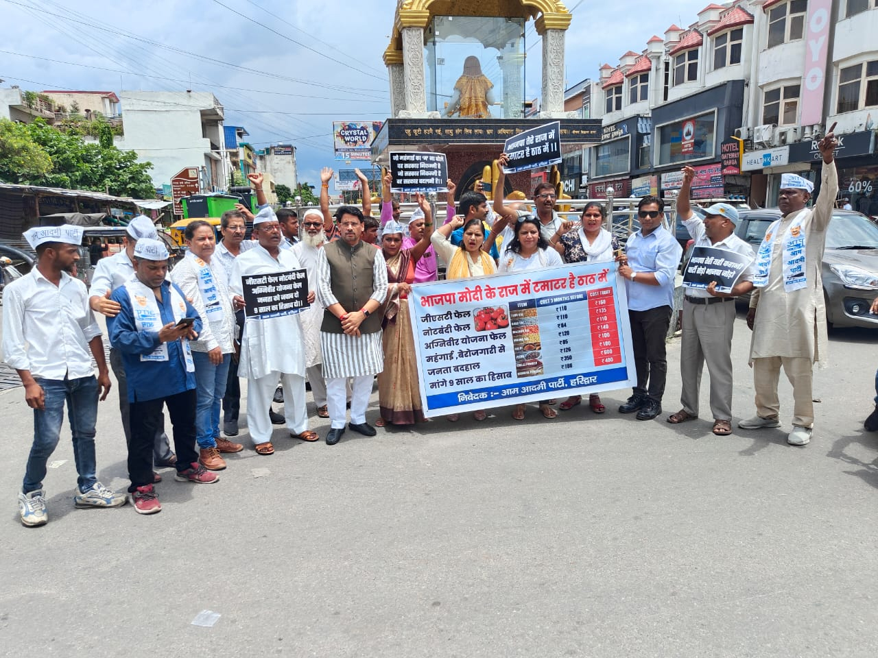 हरिद्वार।आम आदमी पार्टी हरिद्वार ने देश में बढ़ती महंगाई को लेकर प्रदेश कार्यकारी अध्यक्ष महिला मोर्चा हेमा भंडारी एवं महानगर अध्यक्ष अनिल सती के नेतृत्व मे रानीपुर मोड़ स्थित चंद्राचार्य चौक पर प्रदर्शन किया। इस अवसर पर पार्टी के प्रदेश उपाध्यक्ष नरेश शर्मा ने कहा कि भारतीय जनता पार्टी की सरकार में महंगाई चरम पर है। आज सब्जी दाल, आटा, पेट्रोल, डीजल के दाम आसमान छू रहे हैं। आज हर वर्ग अपने आप को पीड़ित और उपेक्षित महसूस कर रहा है।