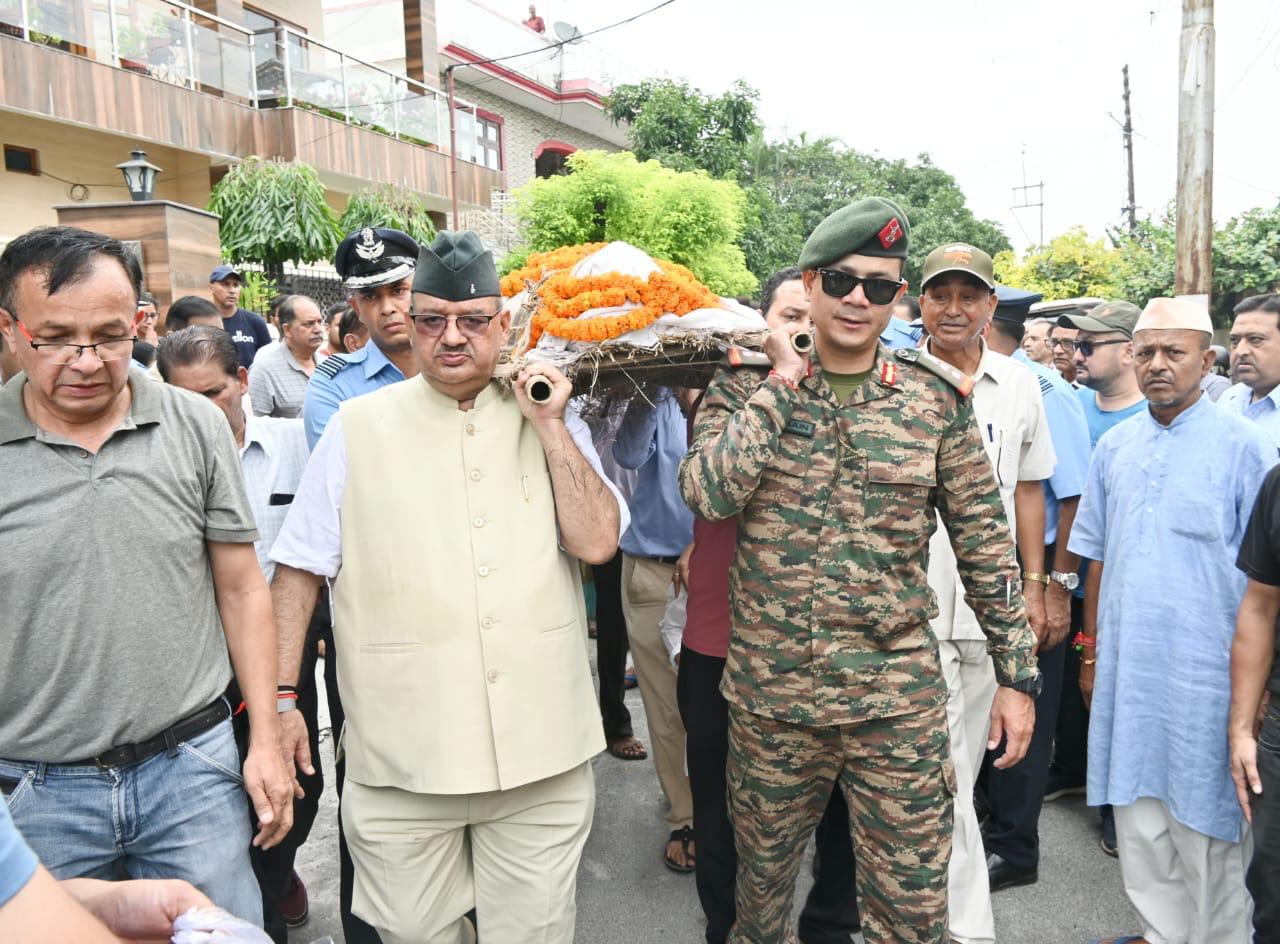 इस अवसर पर पूर्व सीएम त्रिवेंद्र सिंह रावत सहित हजारों की संख्या स्थानीय लोग भी उपस्थित रहे।सैनिक कल्याण मंत्री गणेश जोशी ने ईश्वर दिवंगत आत्मा की शांति के लिए ईश्वर से प्रार्थना करते हुए शोकाकुल परिजनों को इस गहरे दुःख को सहने की कामना की। मंत्री ने परिवार जनों को सरकार की तरफ से हर संभव मदद का भरोसा भी दिलाया।
