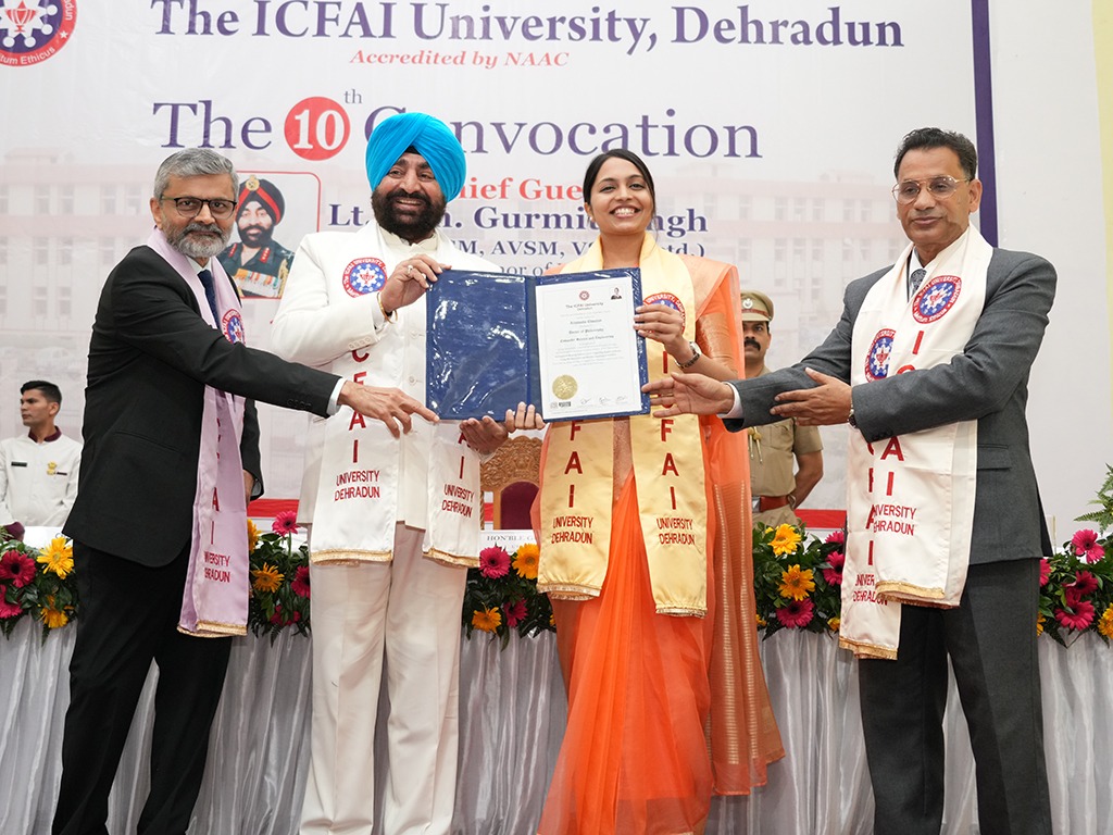 देहरादून 12 सितंबर। राज्यपाल लेफ्टिनेंट जनरल गुरमीत सिंह (से नि) ने मंगलवार को इक्फाई विश्वविद्यालय, देहरादून के 10वें दीक्षांत समारोह में बतौर मुख्य अतिथि प्रतिभाग किया। दीक्षांत समारोह में उन्होंने उत्तीर्ण हुए 586 छात्र-छात्राओं को डिग्रियां एवं सर्वश्रेष्ठ प्रदर्शन करने वाले 28 छात्र-छात्राओं को मेडल प्रदान किए।