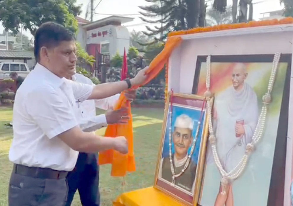 देहरादून 02 अक्टूबर। गाँधी जयन्ती एवं लाल बहादुर शास्त्री की जयन्ती के अवसर पर आज पुलिस मुख्यालय में एक सादे कार्यक्रम का आयोजन किया गया। जिसमे पीवीके प्रसाद अपर पुलिस महानिदेशक पीएसी एवं उपस्थित सभी अधिकारियों, कर्मचारियों द्वारा गाँधी जी व शास्त्री जी के चित्रों पर माल्यार्पण कर श्रद्धासुमन अर्पित किये गये।