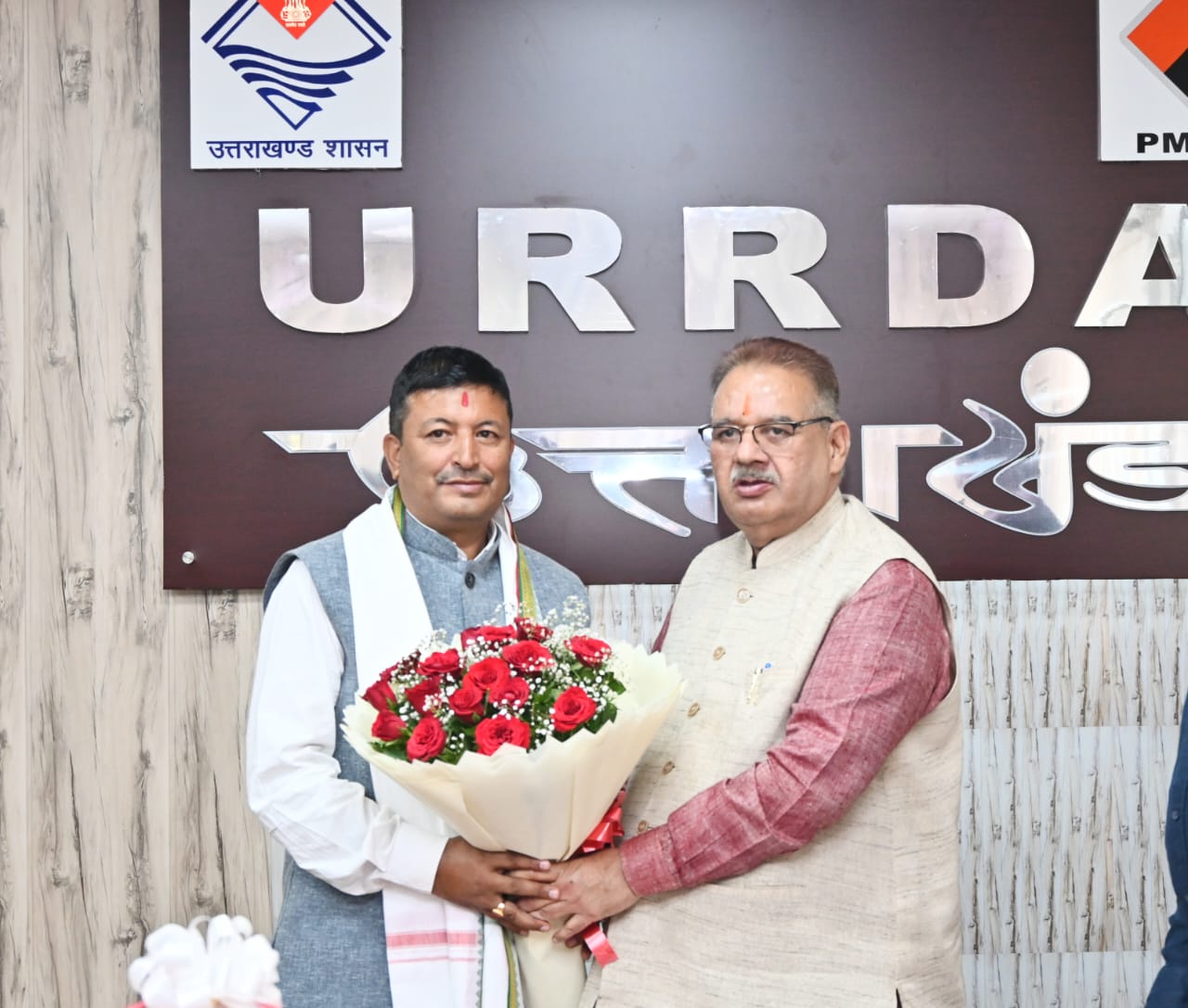 देहरादून। कैबिनेट मंत्री गणेश जोशी से आज आईटी पार्क स्थित पीएमजीएसवाई के कार्यालय में नियुक्त दायित्वधारी प्रधानमंत्री ग्रामीण सड़क योजना राज्य स्तरीय अनुश्रवण परिषद् के उपाध्यक्ष शिव सिंह बिष्ट को पदभार ग्रहण करने की बधाई एवं शुभकामनाएं दी।