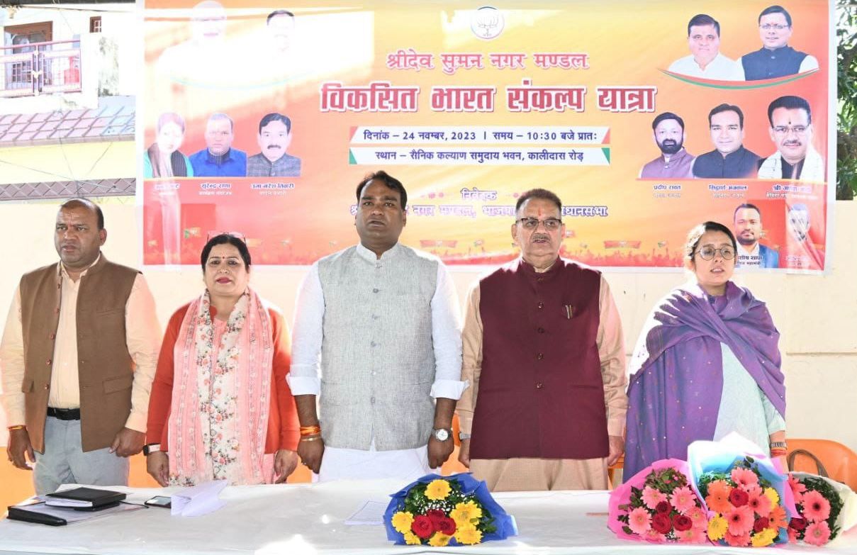 देहरादून, 24 नवम्बर। कैबिनेट मंत्री गणेश जोशी ने देहरादून में मसूरी विधानसभा क्षेत्र में शहीद दुर्गा मल्ल और श्रीदेव सुमन नगर मंडल द्वारा आयोजित विकसित भारत संकल्प यात्रा की तैयारियो के संबंध में बैठक को संबोधित किया। कैबिनेट मंत्री गणेश जोशी ने अपने सम्बोधन में कहा हर पात्र व्यक्ति तक सरकार की ओर से संचालित जन कल्याणकारी योजनाओं का लाभ पहुंचाने के लिए केन्द्र सरकार की ओर से विकसित भारत संकल्प यात्रा शुरुआत की गई है। उन्होंने कहा प्रधानमंत्री नरेन्द्र मोदी के जनजातीय गौरव दिवस के मौके पर झारखंड से “विकसित भारत संकल्प यात्रा” का शुभारंभ किया गया। उन्होंने कहा प्रदेश में देहरादून में राज्यपाल गुरमीत सिंह और जनपद ऊधमसिंह नगर प्रभारी मंत्री के नाते उनके द्वारा उधमसिंह नगर के सितारगंज से विकसित भारत संकल्प यात्रा का शुभारंभ किया गया था। मंत्री गणेश जोशी ने कहा केंद्र सरकार की जनकल्याणकारी योजना की जानकारी और उसका लाभ समाज के अंतिम व्यक्ति तक पहुंचे। जिसके लिए पार्टी संगठन और सरकार के बीच समन्वय बनाकर अधिक से अधिक लोगों को यात्रा से जुड़ना है और मौके पर ही उनकी समस्याओं का निस्तारण करवाने के प्रयास किए जाने का पार्टी पदाधिकारियों एवं कार्यकर्ताओं से आव्हान किया। इस दौरान मंत्री ने पीएम मोदी के विगत 09 वर्षो में हुए अभूतपूर्व विकास कार्यों की उपलब्धियां भी गिनाई। उन्होंने विकसित भारत संकल्प यात्रा का सफल संचालन के लिए पार्टी कार्यकर्ताओं से आव्हान करते हुए कहा वंचित लोगों तक सरकार की लाभान्वित योजनाओं को पहुंचाने की अपील की। इस अवसर पर भाजपा महानगर अध्यक्ष सिद्धार्थ अग्रवाल, भाजयुमो राष्ट्रीय उपाध्यक्ष नेहा जोशी, मंडल अध्यक्ष प्रदीप रावत, शहीद दुर्गा मल्ल मंडल अध्यक्ष ज्योति कोटिया, महानगर महामंत्री सुरेंद्र राणा, मुख्य वक्ता कमली भट्ट, रतन सिंह चौहान, संध्या थापा, निर्मला थापा, टीडी भूटिया सहित दोनों मण्डलों के पार्टी पदाधिकारी उपस्थित रहे।
