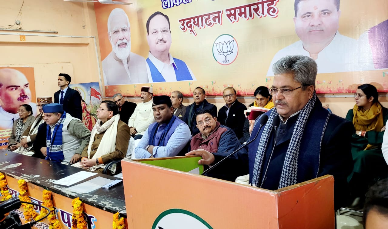 देहरादून 01 फरवरी। भारतीय जनता पार्टी महानगर देहरादून कार्यालय मे टिहरी लोकसभा चुनाव कार्यालय का उद्घाटन राष्ट्रीय महामंत्री उत्तराखण्ड प्रभारी एवं लोकसभा चुनाव प्रभारी दुष्यंत गौतम, प्रदेश अध्यक्ष महेन्द्र भट्ट एवं प्रदेश के मुख्यमंत्री पुष्कर सिंह धामी के द्वारा किया गया। इसके साथ ही मुख्य अतिथि दुष्यंत गौतम नें अन्य चार लोकसभाओं के भी कार्यालयों का वचुर्वल माध्यम से उद्घाटन किया। भाजपा ने राज्य की पांचों लोकसभा सीटों पर चुनाव कार्यालय की शुरुआत देहरादून से शुभारंभ कर की। भारतीय जनता पार्टी ने टिहरी लोकसभा का कार्यालय देहरादून महानगर, हरिद्वार लोकसभा कार्यालय हरिद्वार शहर, पौड़ी गढ़वाल का कार्यालय श्रीनगर, नैनीताल का ऊधमसिंह नगर और अल्मोड़ा का कार्यालय अल्मोड़ा में बनाया है।