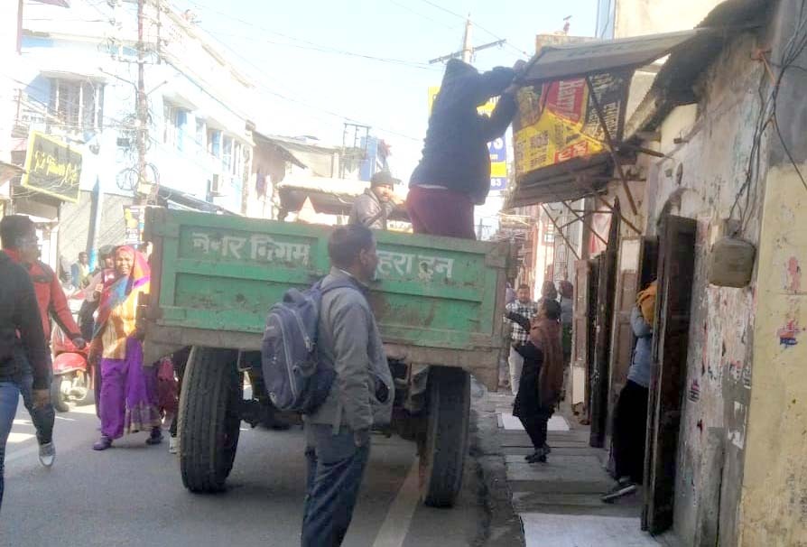 देहरादून, 10 फरवरी। मुख्यमंत्री पुष्कर सिंह धामी द्वारा अतिक्रमण पर प्रभावी कार्यवाई के निर्देश दिए हैं। जिलाधिकारी श्रीमती सोनिका के निर्देशन में अतिक्रमणमुक्त अभियान के अन्तर्गत टीमों द्वारा अतिक्रमण हटाने की कार्यवाही की जा रही है। घंटाघर- चकराता रोड-एफआरआई-प्रेमनगर तक, आदि स्थानों से अतिक्रमण हटाने की कार्रवाई की गई। नगर निगम ने 13 चालान करते हुए रुपए 10700 के अर्थदंड की कार्रवाई की गई, पुलिस द्वारा लगभग 30 चालान करते हुए, रुपए 14700 के अर्थदंड की कार्रवाई की गई। इसी प्रकार आरटीओ द्वारा लगभग 11 चालान करते हुए रुपए 5500 के अर्थदंड की कार्रवाई की गई। जिलाधिकारी ने संबंधित विभागों के अधिकारियों को निर्देशित किया है, कि अतिक्रमण के विरुद्ध नियमित अभियान चलाते हुए, फुटपाथ, सड़कों को अतिक्रमणमुक्त करें तथा किसी भी दशा में उन्हें पुनः अनाधिकृत रूप से अतिक्रमण व किसी भी प्रकार की अवाछनीय गतिविधिया संचालित न होने दे।