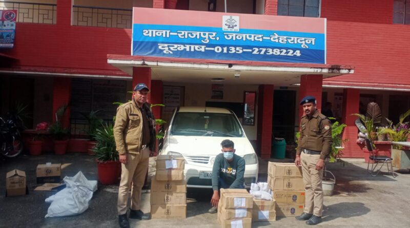 देहरादून, 20 फरवरी। शराब तस्करों के विरुद्ध दून पुलिस ने बड़ी कार्यवाही करते हुये अवैध रूप से शराब की तस्करी कर रहे एक शराब तस्कर को गिरफ्तार कर लिया हैं। पुलिस ने अभियुक्तों के कब्जे से 17 पेटी ( 07 पेटी अंग्रेजी,10 पेटी देसी) शराब तथा तस्करी में प्रयुक्त कार बरामद की हैं।