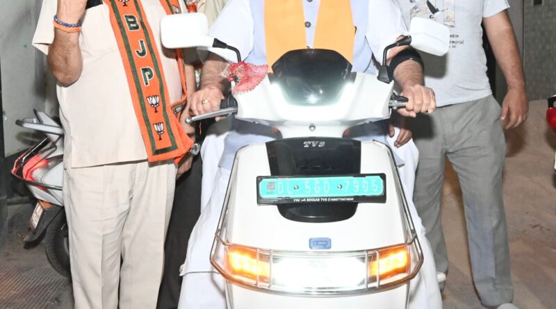दुपहिया वाहन पर प्रचार के लिए निकले कैबिनेट मंत्री