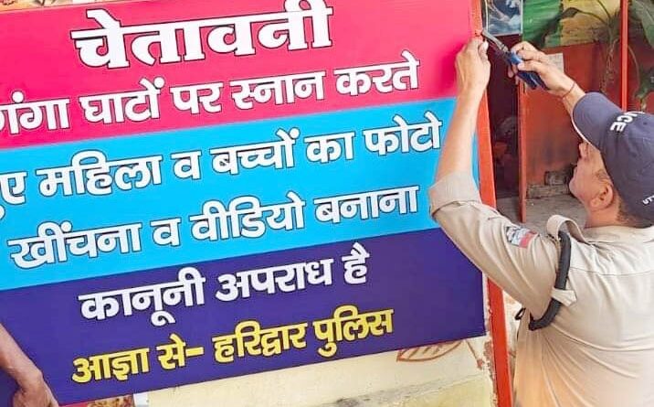 हरिद्वार। आज हरिद्वार पुलिस ने जगह-जगह चेतावनी बोर्ड लगाए। विगत में घटी कुछ घटनाओं के दृष्टिगत हरिद्वार पुलिस द्वारा गंगा घाटों के आसपास चेतावनी बोर्ड लगाए जा रहे हैं। जिसमें कोतवाली ज्वालापुर पुलिस द्वारा खन्ना नगर घाट, प्रेम नगर आश्रम घाट, गोविंदपुरी घाट, चौधरी चरण सिंह घाट आदि घाटों पर चेतावनी बोर्ड लगाए गए। जिसमें स्नान करते समय महिलाओं, बच्चों की वीडियो रील, फोटो खींचना, बनाना कानूनी अपराध है साथ ही स्नान करते समय अपने सामान का ध्यान स्वयं रखें जेब कतरों, उठाईगीरों से सावधान रहने आदि चेतावनी बोर्ड लगाए गए।