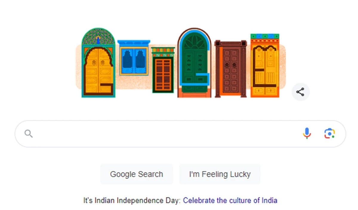 सर्च इंजन गूगल ने अपना डूडल भारत के 78वें स्वतंत्रता दिवस को समर्पित करते हुए इसमें ‘भारत के पारंपरिक द्वार’ निरूपित किए हैं। इन द्वारों पर अंग्रेजी वर्णमाला के अक्षरों ‘जी’, ‘ओ’, ‘ओ’ ‘जी’, ‘एल’, ‘ई’ से जो‘गूगल’ लिखा गया है उसमें प्रत्येक अक्षर पर एक एक द्वार को खूबसूरत डिजाइन के साथ दिखाया गया है।