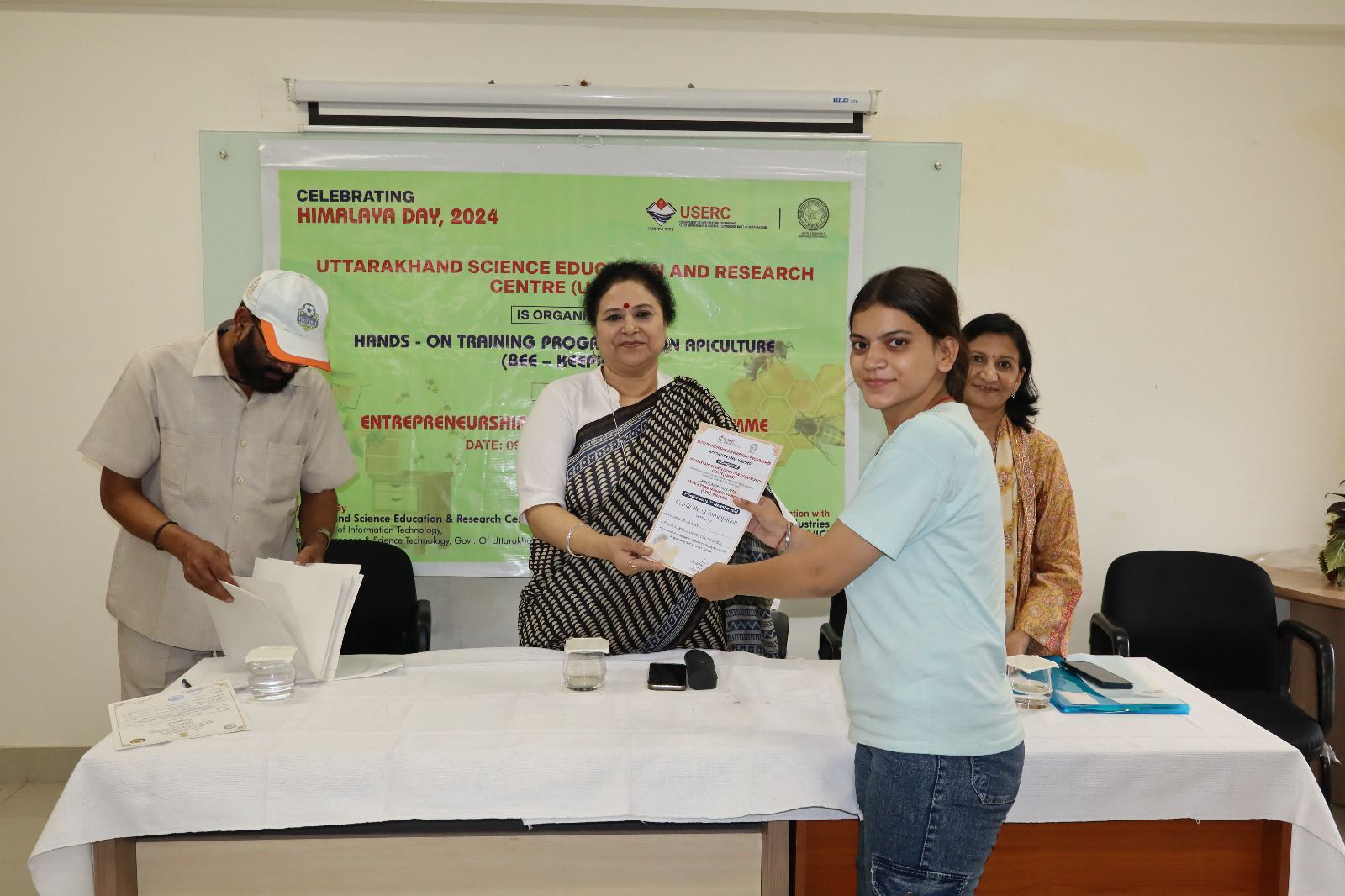 कार्यक्रम की समन्वयक यूसर्क की वैज्ञानिक डॉक्टर मन्जू सुन्दरियाल के द्वारा सम्पूर्ण मौनपालन प्रशिक्षण की गतिविधियों, हैन्डस ऑन ट्रैनिग की रिपोट करते हुये बताया कि इस प्रशिक्षण के द्वारा राज्य में बेरोजगार युवाओं को रोजगार के अवसर प्राप्त होंगे। कार्यक्रम में हर प्रतिभागी द्वारा प्रशिक्षण की रिपोर्ट एवं अनुभव प्रस्तुत किये गये। निदेशक यूसर्क प्रोफेसर (डा.) अनीता रावत द्वारा समस्त प्रतिभागियों को प्रमाण पत्र प्रदान किये गये। कार्यक्रम में उत्तराखण्ड राज्य के 8 जिलो से 12 संस्थानों के 42 प्रतिभागियों द्वारा प्रशिक्षण प्राप्त किया। कार्यक्रम के अन्त में डॉ. मन्जू सुन्दरियाल के द्वारा धन्यवाद ज्ञापित किया गया।
