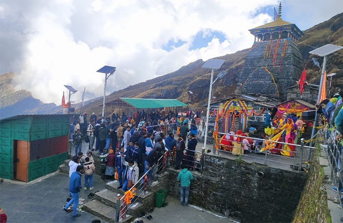 देहरादून, 4 नवम्बर। पंचकेदारों में प्रतिष्ठित तृतीय केदार श्री तुंगनाथ मंदिर के कपाट आज पूर्वाह्न 11 बजे शुभ मुहूर्त पर विधि- विधान से शीतकाल के लिए बंद हो गये हैं। कपाट बंद होने के बाद भगवान तुंगनाथ जी की उत्सव डोली ने स्थानीय वाद्य यंत्रों ढोल-दमाऊं सहित बाबा तुंगनाथ के जय उद्घोष के साथ प्रथम पड़ाव चोपता के लिए प्रस्थान किया। कपाट बंद होने के बाद मंदिर समिति कर्मचारियों तथा श्रद्धालुओं के साथ मंदिर की परिकरमा पश्चात अखोड़ी और हुडु गांव के हक-हकूकधारी भगवान तुंगनाथ जी की चल विग्रह डोली के साथ चोपता को प्रस्थान हुए। आज भगवान तुंगनाथ जी की चल विग्रह डोली चोपता प्रवास करेगी। 5 नवंबर तथा 6 नवंबर को चलविग्रह डोली दूसरे पड़ाव भनकुन प्रवास करेगी। 7 नवंबर को भगवान तुंगनाथ जी की चल विग्रह डोली शीतकालीन गद्दीस्थल श्री मर्केटेश्वर मंदिर मक्कूमठ में विराजमान हो जायेंगी।