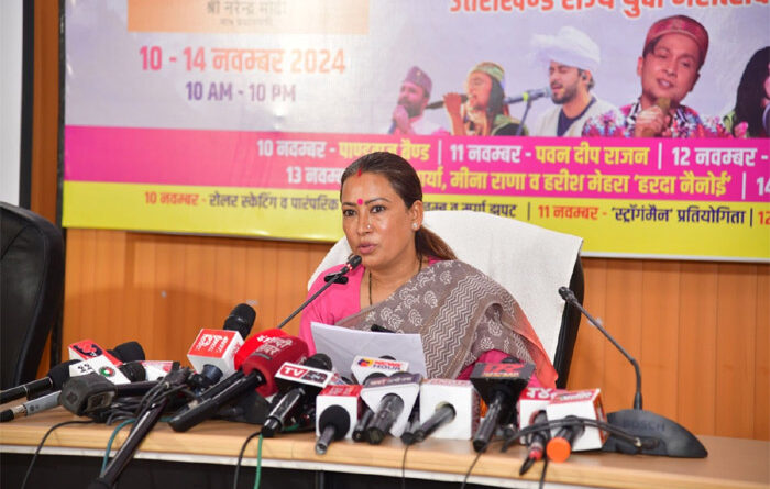 देहरादून। खेल मंत्री श्रीमती रेखा आर्य ने आज उत्तराखण्ड राज्य युवा महोत्सव के विषय में अधिकारियों की बैठक ली। इस दौरान उन्होंने कहा कि 38वें राष्ट्रीय खेलों के प्रचार-प्रसार हेतु पारंपरिक खेलों पिट्ठू, मुर्गा झपट व मलखम का प्रदर्शन किया जाएगा। खेल मंत्री ने बताया कि युवाओं को इनोवेटिव प्रतिस्पर्धाओं के लिए प्रोत्साहित करने के उद्देश्य से उत्तराखण्ड में आगामी 10 से 14 नवंबर तक परेड ग्राउंड, देहरादून में राज्य युवा महोत्सव का आयोजन किया जाएगा। युवा महोत्सव का शुभारंभ मुख्यमंत्री पुष्कर सिंह धामी करेंगे। खेल मंत्री ने कहा कि उत्तराखण्ड राज्य रजत जयंती वर्ष में प्रवेश कर रहा है। इस अवसर पर राज्य युवा महोत्सव का आयोजन किया जा रहा है। युवा महोत्सव में विविध प्रतियोगिताओं के आयोजन से प्रदेश की संस्कृति तथा आगामी 38 वें राष्ट्रीय खेलों का प्रचार-प्रसार होगा। उन्होंने कहा कि इससे प्रदेश के युवा खेल के साथ-साथ अन्य इन्नोवेटिव प्रतिस्पर्धाओं के लिए भी प्रोत्साहित होंगे। इस अवसर पर निदेशक खेल प्रशांत आर्य, संयुक्त निदेशक अजय अग्रवाल सहित संबंधित अधिकारी उपस्थित रहे।