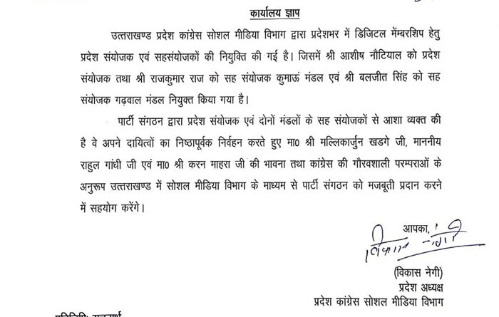 सोशल मीडिया विभाग द्वारा चलाया जा रहा डिजिटल मेंम्बरशिप कार्यक्रम : विकास नेगी