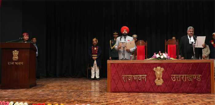 देहरादून 26 दिसम्बर। राज्यपाल लेफ्टिनेंट जनरल गुरमीत सिंह (से नि) ने गुरुवार को राजभवन देहरादून में उत्तराखण्ड उच्च न्यायालय के नवनियुक्त मुख्य न्यायाधीश न्यायमूर्ति गुहनाथन नरेंदर को पद की शपथ दिलायी। मुख्य सचिव श्रीमती राधा रतूड़ी ने भारत की राष्ट्रपति द्वारा न्यायमूर्ति गुहनाथन नरेंदर को उत्तराखण्ड उच्च न्यायालय के मुख्य न्यायाधीश बनाए जाने से संबंधित अधिपत्र पढ़ा। शपथ ग्रहण समारोह में मुख्यमंत्री पुष्कर सिंह धामी, प्रथम महिला श्रीमती गुरमीत कौर, कैबिनेट मंत्री सुबोध उनियाल, डॉ. धन सिंह रावत, पूर्व मुख्यमंत्री डॉ. रमेश पोखरियाल ‘निशंक’, पूर्व मुख्यमंत्री एवं सांसद त्रिवेंद्र सिंह रावत, डीजीपी दीपम सेठ, नैनीताल हाईकोर्ट की रजिस्ट्रार जनरल कहकशा खान, सचिव श्री राज्यपाल रविनाथ रामन, विधि परामर्शी अमित कुमार सिरोही सहित वरिष्ठ न्यायमूर्तिगण, वरिष्ठ अधिकारीगण व अन्य गणमान्य अतिथि उपस्थित रहे।