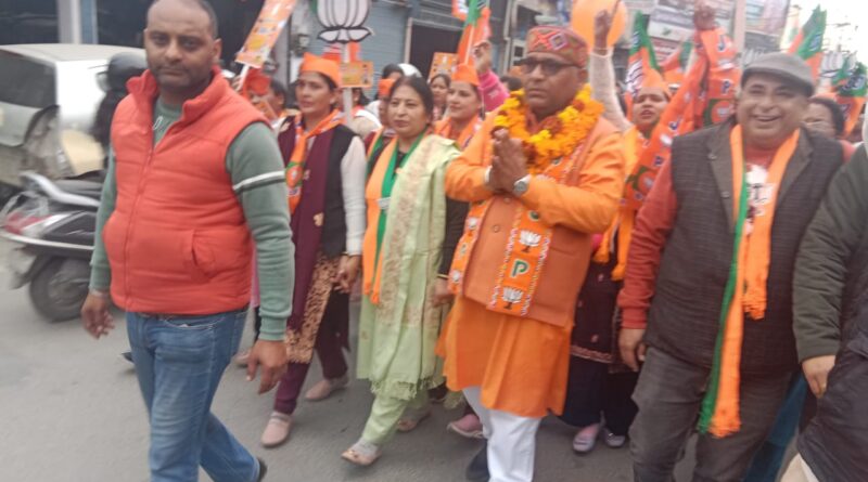 देहरादून। उत्तराखण्ड राज्य के नगर निकाय चुनाव का प्रचार अंतिम चरण में पहुंच चुका है। 23 जनवरी को सभी प्रत्याशियों के भाग्य का फैसला मत पेटियों में बंद हो जायेगा। चुनाव के मतदान की तिथि निकट आते ही सभी प्रत्याशी अपने अपने स्तर पर मतदाताओं को रिझाने के लिये ऐड़ी का जोर लगा रहे है। जहां मेयर से लेकर पार्षद प्रत्याशी तक डोर टू डोर चुनाव प्रचार कर रहे है वहीं आज वार्ड नम्बर 15 करनपुर से भाजपा प्रत्याशी रवि कुमार (गोलू) ने भी शक्ति प्रदर्शन करते हुए वार्ड में जुलूस निकाला उनके जुलूस में जो जन समूह उमड़ा उसे देखकर यहीं लगने लगा है कि पार्षद का चुनाव भाजपा के पक्ष में जा रहा है।