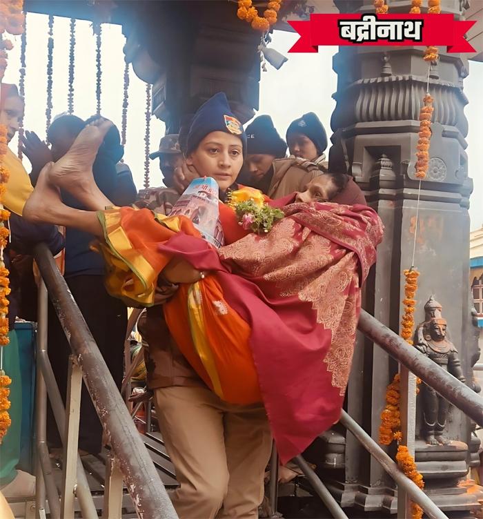 चमोली। पवित्र बद्रीनाथ धाम की यात्रा आस्था और भक्ति का प्रतीक है। हर साल लाखों श्रद्धालु भगवान बद्री विशाल के दर्शन के लिए हिमालय की कठिन डगर नापते हैं। यह यात्रा जहाँ एक ओर आध्यात्मिक सुकून देती है, वहीं शारीरिक रूप से कमजोर या बुजुर्ग श्रद्धालुओं के लिए कई बार चुनौतीपूर्ण भी बन जाती है। ऐसे में, जब ‘खाकी’ वर्दी में मानवीयता और ममता का ऐसा दुर्लभ संगम देखने को मिले, तो मन श्रद्धा और सम्मान से भर जाता है। दरअसल, बद्रीनाथ धाम में दर्शन के लिए आई एक बेहद बुजुर्ग महिला श्रद्धालु चलने में असमर्थ थीं। आस्था उन्हें बद्री विशाल के दरबार तक खींच लाई थी, लेकिन शारीरिक कमजोरी उन्हें मंदिर तक पहुँचने में बाधा बन रही थीं। भीड़ और रास्ते की कठिनाई को देखकर उनके चेहरे पर निराशा झलक रही थी। वे शायद इस बात से दुखी थीं कि इतनी दूर आने के बाद भी वे भगवान के दर्शन नहीं कर पाएंगी। यह दृश्य ड्यूटी पर तैनात उपनिरीक्षक विनिता नेगी ने देखा। वर्दी में होने के बावजूद, उनका दिल उस बुजुर्ग माँ की तकलीफ देखकर पसीज गया। उन्होंने एक पल भी नहीं सोचा और तुरंत उस बुजुर्ग श्रद्धालु के पास पहुंचीं। उनकी असमर्थता देखकर, विनिता नेगी ने वो किया जिसकी किसी ने शायद कल्पना भी नहीं की थी। उन्होंने उस बुजुर्ग माँ को गोदी में उठाकर मंदिर के मुख्य द्वार तक ले गईं और उन्हें सुगमता से दर्शन करवाए।