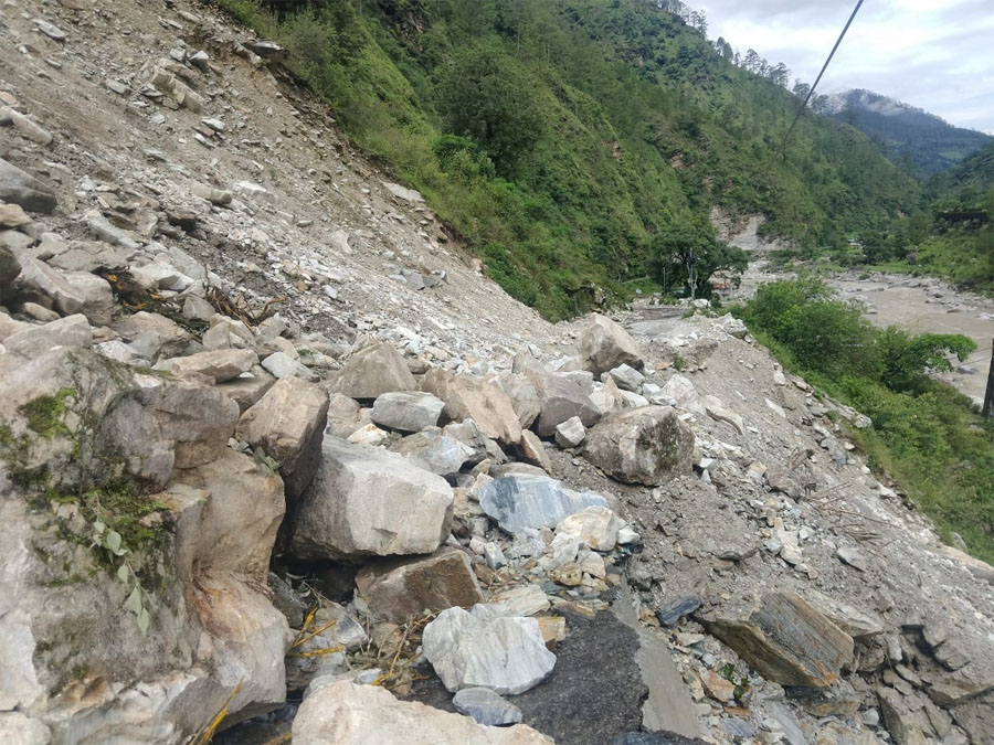 चमोली/देहरादून। निजमुला घाटी के गाड़ी गांव में रात को हुई भारी बारिश से जनजीवन अस्त-व्यस्त हो गया है। गांव का पैदल रास्ता ध्वस्त हो गया है। बिजली और पानी की सप्लाई भी ठप पड़ गई है। बिरही-निजमुला सड़क भी काली चट्टान व तौली तोक के पास अवरुद्ध हो गया है। जिला प्रशासन की पहल पर सड़क को खोलने का काम भी शुरू हो गया है। निजमुला घाटी में बीती रात तेज बारिश हुई। गाड़ी गांव में इससे सबसे अधिक नुकसान हुआ है। गांव का मुख्य पैदल मार्ग ध्वस्त हो गया है। इस मार्ग के ठीक ऊपर से नेत्र सिंह का आवासीय मकान को खतरा उत्पन्न हो गया है। गांव की पेयजल लाइन का मुख्य स्रोत भी क्षतिग्रस्त हो गया है। तोली, ननाली और नेवा तोक को जाने वाली पेयजल लाइन भी ध्वस्त हो गई है। जिससे ग्रामीणों के सम्मुख पेयजल की समस्या उत्पन्न हो गई है। तोली तोक के पास पेड़ गिरने से क्षेत्र में सप्लाई हो रही 33 केवी की विद्युत लाइन भी टूट गई है। जिससे निजमुला घाटी के 13 से अधिक गांवों में बिजली गुल हो गई है। सेरा गांव में अतिवृष्टि नुकसान हुआ है। घटना में दो गौशाला को नुकसान होने के साथ ही कुछ घरों में मलबा घुसा गया है। जिसका संज्ञान लेते हुए जिलाधिकारी संदीप तिवारी के निर्देश पर तहसील प्रशासन की टीम घटना स्थल का निरीक्षण कर रही है। जिलाधिकारी ने प्रभावितों को तत्काल राहत देने के साथ ही ग्रामीणों को सुरक्षित स्थानों पर शिफ्ट करने के आदेश दिए हैं।