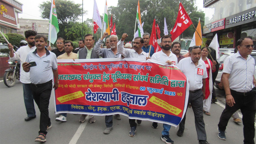 ट्रेड यूनियनों का ‘भारत बंद’ : राजधानी दून मे निकला जुलूस, मुख्यालय पर प्रदर्शन