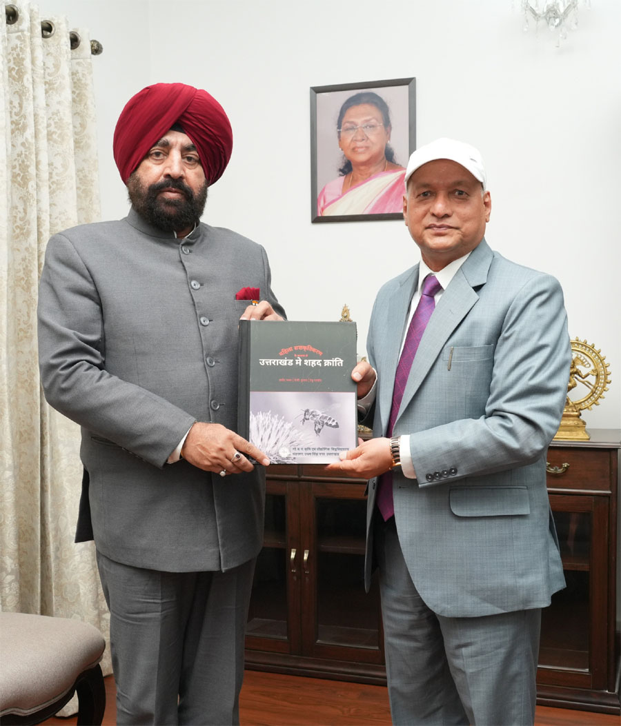 देहरादून। राज्यपाल लेफ्टिनेंट जनरल श्री गुरमीत सिंह (से नि) से मंगलवार को राजभवन में गोविन्द बल्लभ पंत कृषि एवं प्रौद्योगिक विश्वविद्यालय, पंतनगर के कुलपति डॉ. मनमोहन सिंह चौहान ने मुलाकात की। इस अवसर पर कुलपति ने राज्यपाल को कॉफी टेबल बुक ‘‘महिला सशक्तीकरण के माध्यम से उत्तराखण्ड में शहद क्रांति’’ भेंट की, जिसमें विश्वविद्यालय द्वारा मधुमक्खी पालन के क्षेत्र में पिछले एक वर्ष में किए गए शोध, प्रशिक्षण और ग्रामीण महिलाओं की सहभागिता के बारे में जानकारी दी गई है। राज्यपाल ने कहा कि उत्तराखण्ड का प्राकृतिक वातावरण और जैव विविधता मधुमक्खी पालन के लिए बहुत ही उपयुक्त है। ऐसे में, राज्य की महिलाओं को इस कार्य से जोड़ना न सिर्फ उनके आत्मनिर्भर बनने की दिशा में मदद करेगा, बल्कि उन्हें और अधिक सशक्त बनाएगा। राज्यपाल ने कहा कि वर्तमान में उत्तराखण्ड में करीब 12 हजार मीट्रिक टन शहद का उत्पादन होता है, जबकि हमारे राज्य में इसकी क्षमता 40 से 60 हजार मीट्रिक टन तक बढ़ाई जा सकती है। इससे यह साफ है कि मधुमक्खी पालन में अभी और आगे बढ़ने की बड़ी संभावना है। राज्यपाल ने कहा कि यहाँ के शहद में विशेष औषधीय गुण हैं जो शोध में साबित हुए हैं। उन्होंने कहा कि मौन पालन के क्षेत्र में एक क्रांति लाए जाने की आवश्यकता है, जिससे राज्य की ग्रामीण अर्थव्यवस्था को एक नया आयाम प्राप्त होगा और सामाजिक एवं आर्थिक सशक्तीकरण की दिशा में ठोस प्रगति सुनिश्चित हो सकेगी।