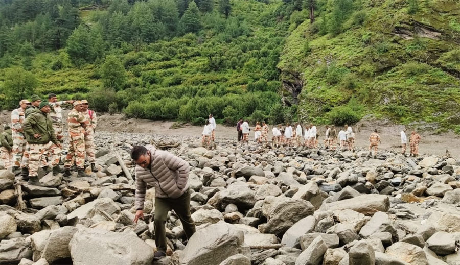 देहरादून। उत्तरकाशी जनपद के धराली क्षेत्र में प्राकृतिक आपदा की गंभीरता को दृष्टिगत रखते हुए राहत एवं बचाव कार्यों के प्रभावी संचालन हेतु वरिष्ठ पुलिस अधिकारियों एवं विशेष पुलिस बलों की तत्काल तैनाती की गई है। भारतीय पुलिस सेवा के वरिष्ठ अधिकारी पुलिस महानिरीक्षक एसडीआरएफ अरुण मोहन जोशी, पुलिस महानिरीक्षक गढ़वाल परिक्षेत्र, राजीव स्वरूप, प्रदीप कुमार राय, अमित श्रीवास्तव (प्रथम) एवं सुरजीत सिंह पंवार, श्रीमती श्वेता चौबे, 1 डिप्टी कमांडेंट तथा 11 डिप्टी एसपी को तत्काल उत्तरकाशी भेजा गया है, जो राहत एवं समन्वय कार्यों का नेतृत्व करेंगे।साथ ही आपदा प्रबंधन को और अधिक सशक्त बनाने हेतु “सेनानायक आईआरबी द्वितीय श्रीमती श्वेता चौबे के नेतृत्व में 40वीं वाहिनी पीएसी के विशेष आपदा राहत दल (ई कंपनी) तथा आईआरबी द्वितीय, देहरादून की सी कंपनी के 140 जवानों को भी उत्तरकाशी रवाना किया गया है।