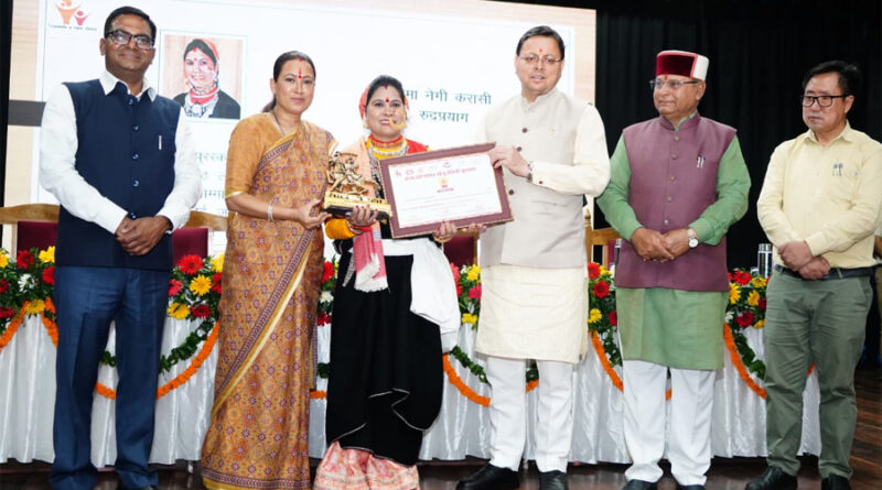 देहरादून। सर्वे चौक स्थित आईआरडीटी सभागार में आयोजित राज्य स्त्री शक्ति, तीलू रौतेली एवं आंगनवाड़ी कार्यकर्ता पुरस्कार वितरण समारोह में मुख्यमंत्री पुष्कर सिंह धामी ने विभिन्न क्षेत्रों में उल्लेखनीय कार्य करने वाली 13 महिलाओं को तीलू रौतेली पुरस्कार और 33 आंगनवाड़ी कार्यकर्तात्रियों को उनके उत्कृष्ट सेवा कार्य के लिए सम्मानित किया। इस मौके पर मुख्यमंत्री श्री पुष्कर सिंह धामी ने वीरांगना तीलू रौतेली को नमन करते हुए कहा कि, तीलू रौतेली ने महज 15 वर्ष की उम्र में अपने रण कौशल से विरोधियों को परास्त किया। जिस उम्र में बच्चे खेलना, कूदना और पढ़ना सीखतें हैं, उसी उम्र में तीलू रौतेली ने अदम्य साहस और वीरता का परिचय दिया। इसलिए वीरांगना तीलू रौतेली को उत्तराखंड की झांसी की रानी कहना अतिशयोक्ति नहीं होगी। मुख्यमंत्री श्री धामी ने कहा कि प्रधानमंत्री श्री नरेंद्र मोदी “नारी तू नारायणी” के मंत्र के साथ मातृशक्ति के कल्याण एवं सशक्तिकरण के लिए कार्य कर रहे है। संसद और विधानसभाओं में महिलाओं को 33 प्रतिशत आरक्षण प्रदान करने की बात हो या बेटी बचाओ-बेटी पढ़ाओ अभियान, उज्ज्वला योजना, लखपति दीदी योजना, केंद्र सरकार हर तरह से महिलाओं को सशक्त बना रही है, इसी तरह ट्रिपल तलाक जैसी कुप्रथा को समाप्त करके भी प्रधानमंत्री श्री मोदी ने देश की महिलाओं को सामाजिक तौर पर मजबूत किया है। मुख्यमंत्री श्री धामी ने कहा कि प्रधानमंत्री के मार्गदर्शन में राज्य सरकार भी मातृशक्ति के कल्याण के लिए समर्पित होकर कार्य कर रही है। इसी क्रम में राज्य सरकार ने जहां महिलाओं के लिए सरकारी सेवाओं में 30 प्रतिशत आरक्षण लागू किया है। वहीं महिलाओं की सुरक्षा और उनके अधिकारों की रक्षा के लिए देश में सर्वप्रथम “समान नागरिक संहिता” को लागू करने का ऐतिहासिक कार्य किया है। मुख्यमंत्री ने कहा कि राज्य सरकार “मुख्यमंत्री लघु उद्योग प्रोत्साहन योजना” और “उद्यमिता विकास कार्यक्रम” जैसी योजनाओं के माध्यम से भी मातृशक्ति को सशक्त बनाने का प्रयास कर रही है। महिलाओं को आर्थिक रूप से आत्मनिर्भर बनाने के लिए महिला स्वयं सहायता समूहों को 5 लाख रुपये तक का ब्याज-मुक्त ऋण प्रदान किया जा रहा है। राज्य सरकार ने वर्ष 2023 से तीलू रौतेली पुरस्कार राशि 31 हजार रुपए से बढ़ाकर 51 हजार और आंगनवाड़ी कार्यकर्ता पुरस्कार धनराशि 21 हजार रुपए से बढ़ाकर 51 हजार कर दी है।