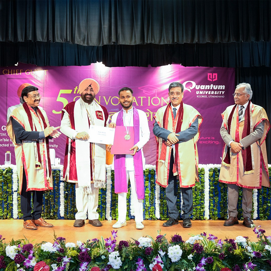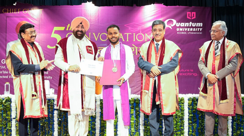 रुड़की। राज्यपाल लेफ्टिनेंट जनरल गुरमीत सिंह (से नि) ने आज क्वांटम विश्वविद्यालय, रुड़की के 5वें दीक्षांत समारोह में मुख्य अतिथि के रूप में प्रतिभाग किया। राज्यपाल ने उत्कृष्ट प्रदर्शन करने वाले विद्यार्थियों को गोल्ड मेडल प्रदान किए। इस अवसर पर विश्वविद्यालय में सर्वश्रेष्ठ उत्कृष्ट प्रदर्शन करने वाली छात्रा साक्षी राज को प्रेसिडेंस मेडल से सम्मानित किया गया। राज्यपाल ने विद्यार्थियों को अपने जीवन में बड़े लक्ष्य निर्धारित करने, परिश्रम और अनुशासन के साथ कार्य करने और समाज तथा राष्ट्र के प्रति अपनी जिम्मेदारियों को निभाने की प्रेरणा दी। दीक्षांत भाषण में राज्यपाल ने उपाधि प्राप्त कर रहे विद्यार्थियों, उनके अभिभावकों और शिक्षकों को बधाई दी और कहा कि दीक्षांत समारोह जीवन का वह स्वर्णिम क्षण है, जो परिश्रम, अनुशासन और दृढ़ इच्छाशक्ति का सुखद परिणाम होता है। उन्होंने उपाधि धारकों से कहा कि सफलता का कोई शॉर्टकट नहीं होता और यह लंबे समय तक किए गए कठिन परिश्रम, धैर्य और अनुशासन का परिणाम होता है। उन्होंने विद्यार्थियों से आग्रह किया कि वे बड़े और असीमित सपने देखें और उन्हें साकार करने के लिए निरंतर परिश्रम, दृढ़ संकल्प और सकारात्मक सोच अपनाएं। राज्यपाल ने कहा कि नैतिकता, चरित्र और विनम्रता ही स्थायी सफलता के सबसे महत्वपूर्ण स्तंभ हैं। उन्होंने आधुनिक तकनीकी क्रांति, एआई, डेटा एनालिटिक्स, रोबोटिक्स और क्वांटम कंप्यूटिंग, का उल्लेख करते हुए विद्यार्थियों से “लाइफ लॉन्ग लर्निंग” अपनाने की अपील की। उन्होंने कहा कि भविष्य में वही युवा नेतृत्व करेगा जो सीखना बंद नहीं करेगा और नई तकनीकों को आत्मसात करेगा। राज्यपाल ने कहा कि भारत अमृत काल की महत्वपूर्ण यात्रा पर अग्रसर है और वर्ष 2047 तक विकसित भारत का निर्माण युवाओं की सक्रिय सहभागिता से ही संभव होगा। उन्होंने विश्वविद्यालय द्वारा वर्ष 2024-25 में अनुसंधान, नवाचार, उद्योग-सहयोग और सामाजिक उत्तरदायित्व के क्षेत्र में की गई उल्लेखनीय प्रगति का भी उल्लेख किया, जो प्रदेश के लिए गर्व का विषय है। राज्यपाल ने शिक्षकों के योगदान की सराहना करते हुए कहा कि एक शिक्षक केवल ज्ञान नहीं देता, बल्कि विद्यार्थियों के जीवन में दिशा देने वाला दीपस्तंभ होता है। इस अवसर पर विश्वविद्यालय के कुलपति डॉ. विवेक कुमार ने विश्वविद्यालय की उपलब्धियां बताई। दीक्षांत समारोह में विधायक श्रीमती ममता राकेश, मेयर रुड़की अनीता अग्रवाल, विश्वविद्यालय के अध्यक्ष अजय गोयल, संस्थापक अध्यक्ष श्याम सुन्दर गोयल, पूर्व अध्यक्ष भारतीय कृषि विश्वविद्यालय संघ डॉ. अजीत कुमार कर्नाटक, कुलसचिव डॉ. अमित दीक्षित सहित विश्वविद्यालय के अन्य सदस्य गण और छात्र-
