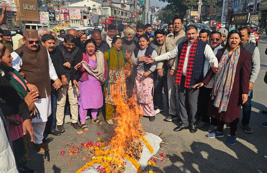 देहरादून। अंकिता भंडारी हत्याकांड में वीआईपी के नाम का खुलासा होने पर युवा कांग्रेस की प्रदेश उपाध्यक्ष स्वाति नेगी के नेतृत्व में युवा कांग्रेस कार्यकर्ताओं द्वारा आज भाजपा सरकार की शव यात्रा निकालते हुए ऐस्लेहॉल चौक पर पुतला दहन किया गया। कार्यक्रम में बडी संख्या में कांग्रेस नेता एवं कार्यकर्ता उपस्थित थे। पूर्व निर्धारित कार्यक्रम के तहत कांग्रेस कार्यकर्ता नारेबाजी करते हुए स्वाति नेगी के नेतृत्व में प्रदेश कार्यालय से शव यात्रा लेकर ऐस्लेहॉल चौक पहुंचे जहां पर उन्होंने भाजपा सरकार के पुतले को आग के हवाले किया। युवा कांग्रेस की प्रदेश उपाध्यक्ष स्वाति नेगी ने कहा कि अंकिता भंडारी हत्याकांड मामले की भाजपा राज्य सरकार सीबीआई जांच को तैयार नहीं है, इससे साबित हो गया है कि भाजपा सरकार बलात्कारियों और हत्यारों के साथ खडी है। उन्होंने यह भी आरोप लगाया कि देवभूमि में सबसे जघन्य हत्याकांड भाजपा सरकार और पुलिस के संरक्षण में भाजपा नेता के रिसोर्ट में हुआ और इस हत्याकांड में भाजपा का राष्ट्रीय नेतृत्व, राज्य नेतृत्व एवं स्थानीय विधायक शामिल थे, यह देवभूमि के लिए कलंकित करने वाली बात है। स्वाति नेगी ने कहा कि मुख्यमंत्री ने घोषणा की थी कि अंकिता के माता पिता से बात कर सीबीआई जांच कराई जायेगी और अब जबकि अंकिता भंडारी के माता पिता दोनों ने उच्चतम न्यायालय के जज की निगरारी में सीबीआई जांच की मांग की है तो भाजपा सरकार क्यों पीछे हट रही है। उन्होंने मुख्यमंत्री से मांग की कि दोषियों के खिलाफ हत्या और हत्या के सबूत मिटाने के लिए सक्षम धाराओं में मुकदमा दर्ज किया जाना चाहिए तथा दोषी कितने भी बडे हों उनको दण्डित किया जाना चाहिए। उन्होंने यह भी कहा कि भाजपा सरकार और संगठन को स्पष्ट करना चाहिए कि वह बलात्कारियों और हत्यारों के साथ खड़ी है या अंकिता भंडारी के साथ। उन्होंने यह भी कहा कि भाजपा के मुख्यमंत्री को इस हत्याकांड की जिम्मेदारी लेते हुए नैतिकता के आधार पर तत्काल इस्तीफा दे देना चाहिए। कार्यक्रम में गोदावरी थापली ,वीरेंद्र पोखरियाल ज्योति रौतेला लालचंद शर्मा गरिमा मेहरा दसौनी अभिनव थापर, रॉबिन त्यागी, शुभम चौहान, विनीत प्रसाद भट्ट, मोहन काला, मोहित मेहता, प्रांचल, सिद्यार्थ अग्रवाल, सिद्वार्थ, धर्मेन्द्र, कृष्णा मारवाह, सुलेमान अली, ललित भद्री, ओमप्रकाश सती, रिया राणा, वन्दना राही, सूरज क्षेत्री आदि अनेक कांग्रेस कार्यकर्ता उपस्थित थे।
