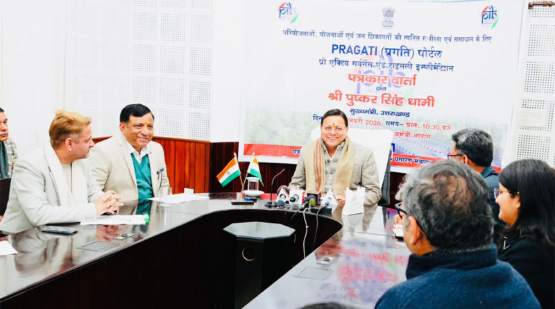 देहरादून। शुक्रवार को मुख्यमंत्री श्री पुष्कर सिंह धामी ने भारत सरकार के प्रगति पोर्टल विषय पर पत्र सूचना कार्यालय, भारत सरकार (पीआईबी) देहरादून द्वारा आयोजित पत्रकार वार्ता को संबोधित किया। उन्होंने इस दौरान राज्य में चल रही विभिन्न केंद्रीय परियोजनाओं के बारे में पत्रकारों को विस्तृत जानकारी दी। वार्ता के दौरान श्री धामी ने जानकारी दी कि परियोजनाओं, योजनाओं एवं जन शिकायतों की त्वरित समीक्षा एवं समाधान के लिए पोर्टल- प्रो एक्टिव एंड टाइमली इम्प्लीमेंटेशन बनाया गया है। मुख्यमंत्री श्री धामी ने कहा कि विभिन्न योजनाएं जो देश के अंदर संचालित होती हैं उनकी समीक्षा के लिए प्रगति पोर्टल डिजिटल इंडिया कार्यक्रम के तहत लॉन्च किया गया था। प्रगति पोर्टल भारत सरकार के प्रमुख कार्यक्रमों की निगरानी करता है और पोर्टल में आई समस्याओं का समाधान भी करता है। जिसकी वजह से विकास की योजनाएं तेजी से धरातल पर उतरती हैं। मुख्यमंत्री ने इस दौरान कहा कि 2014 के बाद से देश में इंफ्रास्ट्रक्चर, परिवहन, रेलवे, आईटी, स्वास्थ्य सेवा, हवाई सेवा की योजनाएं तेजी से आगे बढ़ी हैं। उन्होंने जानकारी देते हुए बताया कि मौजूदा समय में उत्तराखंड में 3.50 लाख करोड़ रुपये के कुल निवेश वाली 42 परियोजनाओं की निगरानी की जा रही है, इनमें से 1.22 लाख करोड़ रुपये के 15 हाई-वैल्यू प्रोजेक्ट्स का रिव्यू PRAGATI मैकेनिज्म के तहत किया जा रहा है। इनमें से अब तक 10 योजनाएं सफलतापूर्वक पूरी हो चुकी हैं और 32 परियोजनाओं पर तेजी से काम चल रहा है। जो 32 परियोजनाएं अंडर इम्प्लीमेंटेशन हैं उनमें से 12 परियोजनाएं PRAGATI पोर्टल के तहत मॉनिटर की जा रही हैं। इनमें सड़क और राजमार्ग की 19 परियोजनाएं, IT/ITES की 3 परियोजनाएं, ऊर्जा उत्पादन की 3 परियोजनाएं, रेलवे की 2 परियोजनाएं, कृषि, उद्योग-वाणिज्य, शिक्षा, स्वास्थ्य समेत, अपशिष्ट और जल प्रबंधन में एक-एक परियोजनाएं शामिल हैं। मुख्यमंत्री श्री पुष्कर सिंह धामी ने कहा कि बड़ी परियोजनाएं जैसे चार धाम सड़क परियोजना पर तेजी से काम हुआ है। इसी प्रकार ऋषिकेश-कर्णप्रयाग रेलवे लाइन देश की प्रमुख परियोजना है जो पहाड़ों के बीच से हमारे सुदूरवर्ती क्षेत्र तक पहुंच रही है। इस परियोजना का काफी काम पूरा हो चुका है और परियोजना के पूरा होते ही यह क्षेत्र पर्यटन, चार धाम आने वाले श्रद्धालुओं की दृष्टि से महत्वपूर्ण होगा। साथ ही सामरिक रूप से भी इसका महत्व बढ़ेगा, क्योंकि कर्णप्रयाग तक रेलवे लाइन पहुंचने से मानसून वर्षाकाल में जो रास्ते अवरुद्ध हो जाते हैं। इस रेलवे लाइन के बिछने से लोगों का सफर आसान हो जाएगा। सीएम धामी ने दिल्ली-देहरादून एक्सप्रेसवे परियोजना के लिए प्रधानमंत्री श्री नरेंद्र मोदी जी का आभार जताया। उन्ह