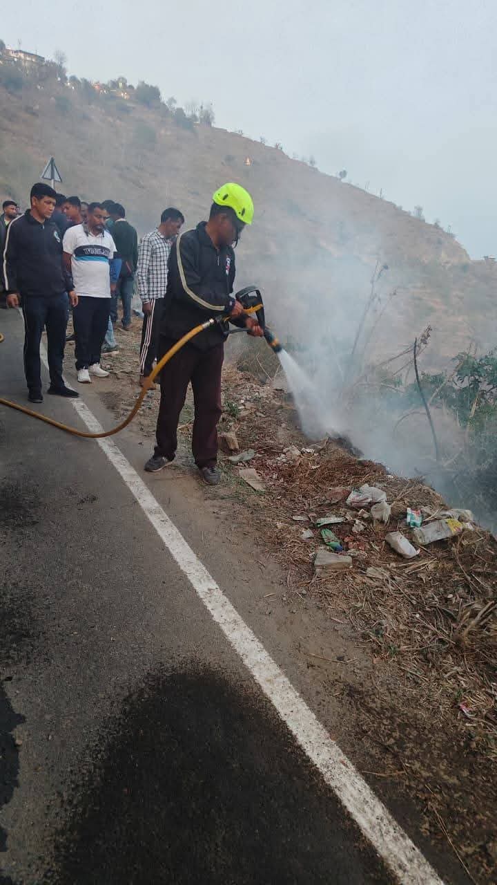 अल्मोड़ा। जंगल में लगी आग पर फायर सर्विस द्वारा त्वरित कार्रवाई करते हुए बुझाया। फायर स्टेशन अल्मोड़ा को सूचना मिली कि भनोली से आगे ग्राम चंगेठी के पास जंगल में आग लगी हुई है जो गांव की ओर बढ़ रही है।जिस पर फायर सर्विस यूनिट ने प्रभारी फायर स्टेशन अल्मोड़ा के निर्देशन में घटनास्थल पर पहुंचकर MFE से पंपिंग कर एक होज रील की सहायता आग को बुझाया।