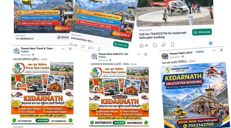 रुद्रप्रयाग, 02 अप्रैल। आगामी श्री केदारनाथ धाम यात्रा 2026 के दृष्टिगत श्रद्धालुओं को साइबर ठगी से सतर्क रहने हेतु महत्वपूर्ण एडवाइजरी जारी की गई है। चारधाम यात्रा के दौरान हेलीकॉप्टर बुकिंग के नाम पर साइबर अपराधियों द्वारा फर्जी वेबसाइट, सोशल मीडिया विज्ञापन एवं व्हाट्सएप मैसेज के माध्यम से लोगों को ठगने के प्रयास लगातार सामने आ रहे हैं। जानकारी के अनुसार, ठग फेसबुक एवं इंस्टाग्राम जैसे प्लेटफॉर्म पर प्रायोजित (Sponsored) पोस्ट के जरिए आकर्षक विज्ञापन दिखाकर लोगों को भ्रमित करते हैं। इसके अतिरिक्त गूगल सर्च में सबसे ऊपर दिखाई देने वाले ‘Sponsored’ लिंक भी कई बार फर्जी हो सकते हैं, जिनके माध्यम से यूजर्स को नकली वेबसाइटों पर ले जाकर उनसे भुगतान कराया जाता है।